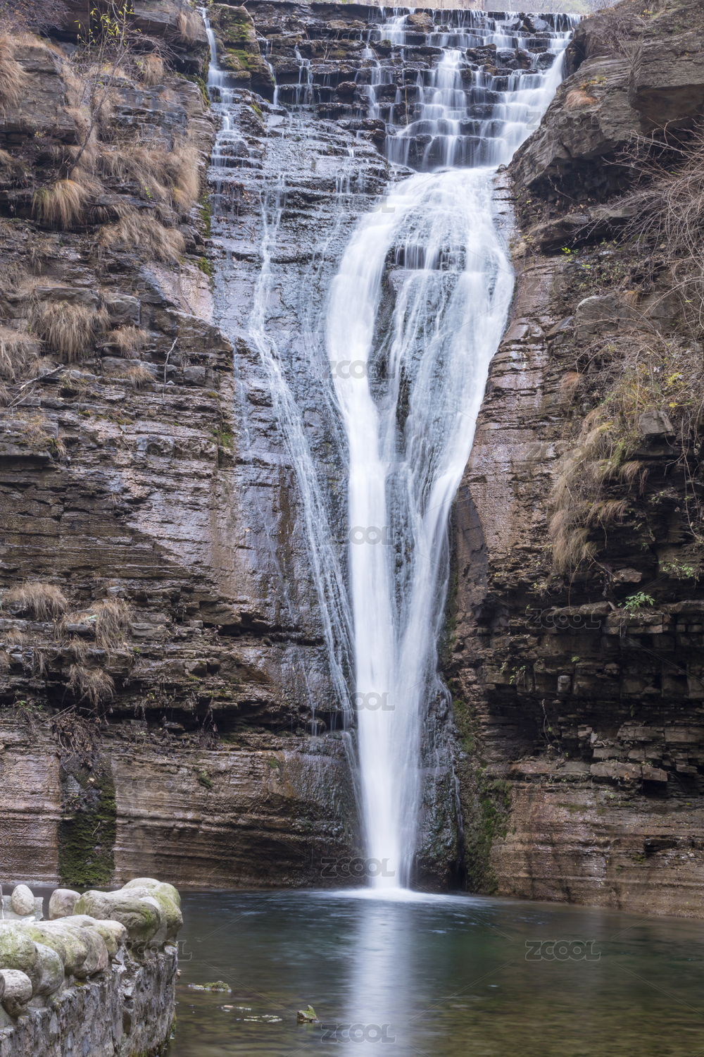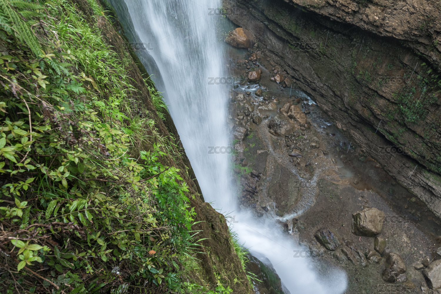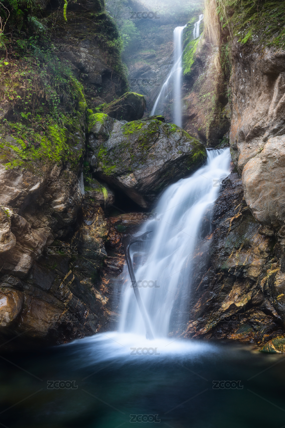 中国贵州贵阳龙里幽静山谷里的清凉瀑布