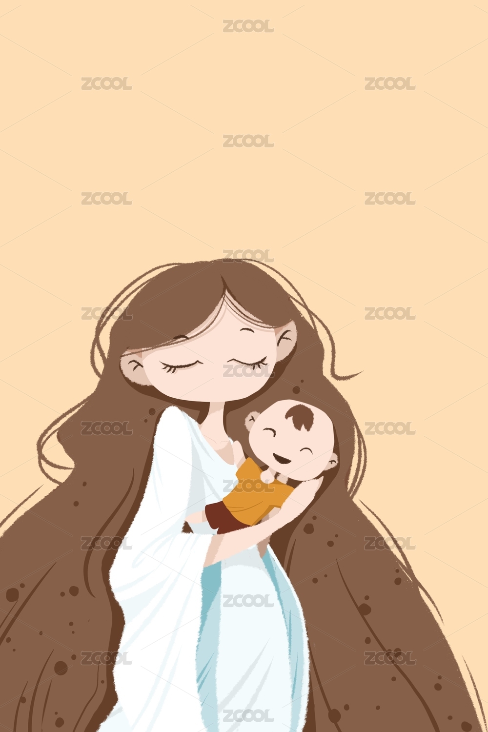 母亲节妈妈抱着萌娃竖版插画矢量图