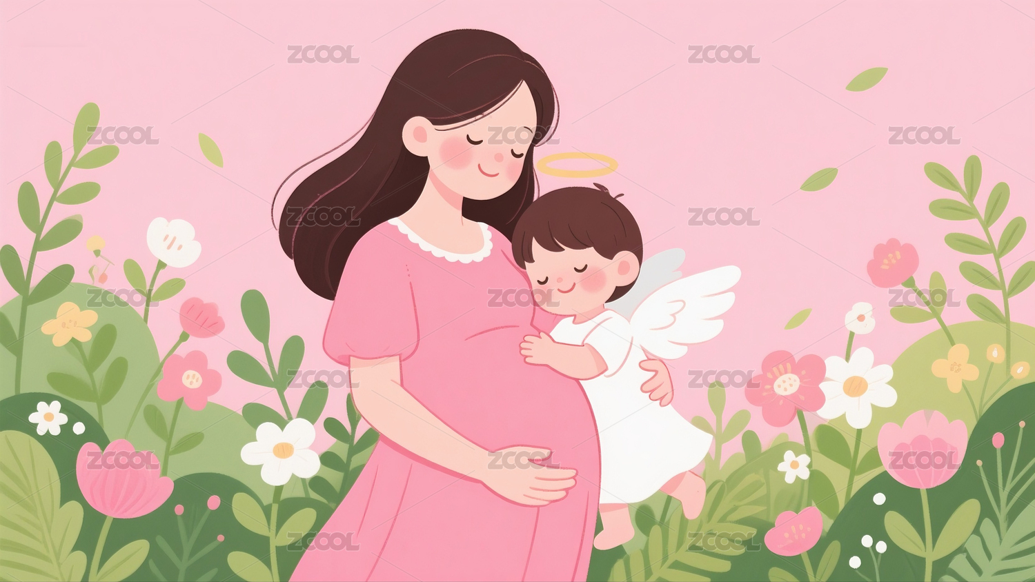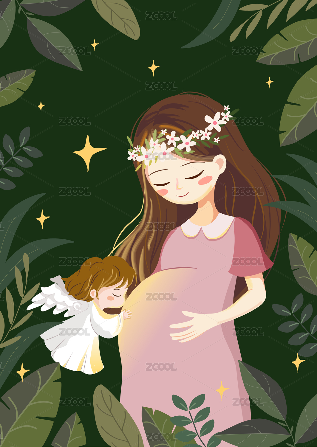 女孩,女人,女生,女性,孕妇,胎儿,孕妈,准妈妈,插图,插画