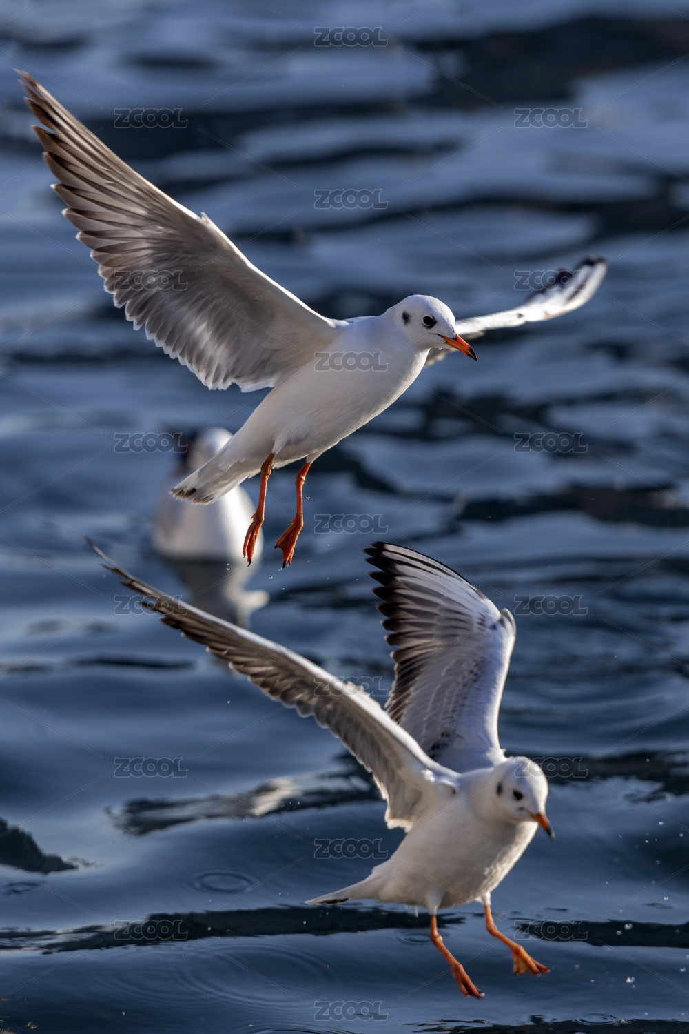 红嘴海鸥在水面上自由飞翔追逐觅食嬉戏