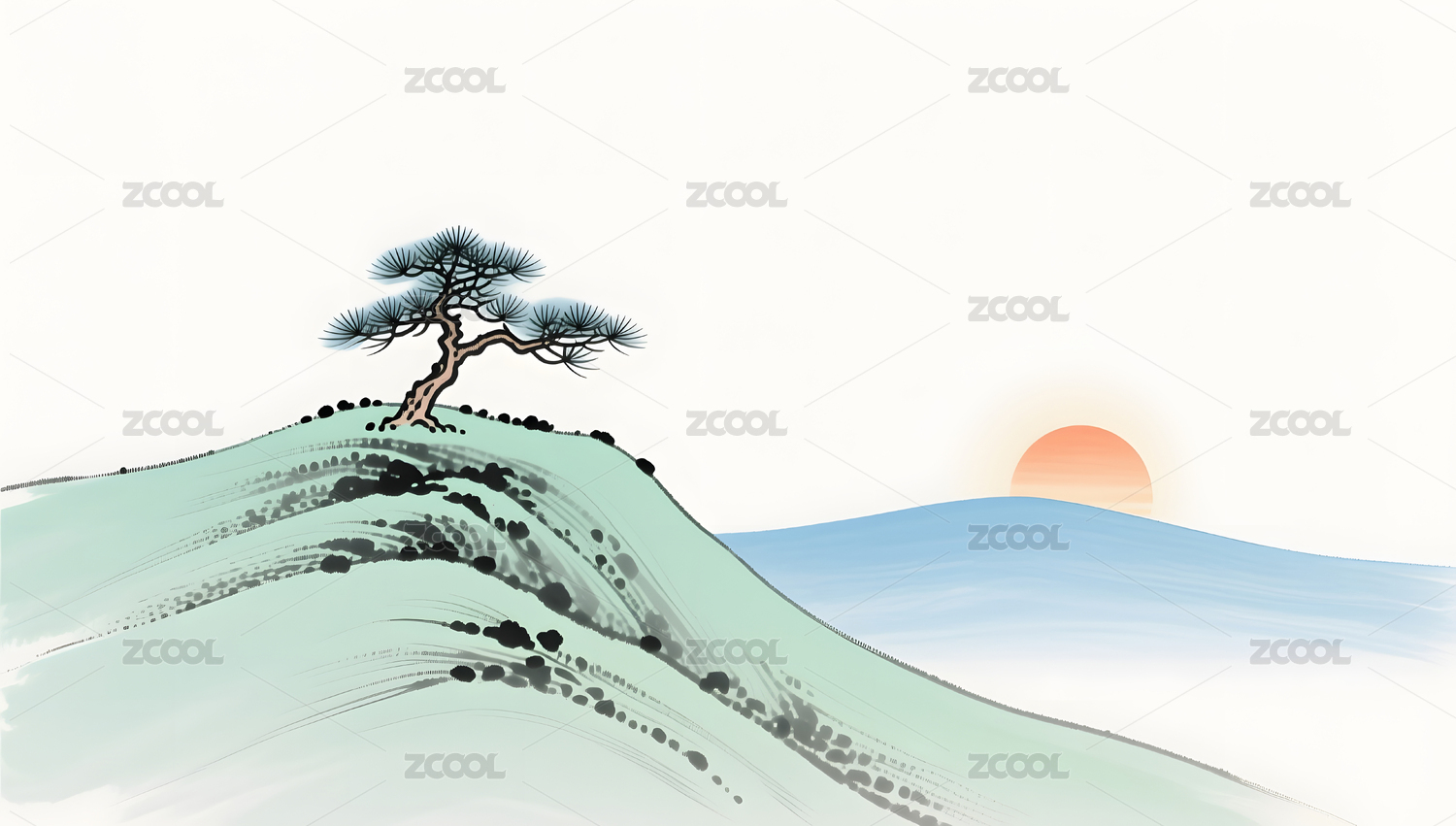 水墨画,山水画,宁静,禅意,写意,风景,树木,山峦,自然,传统