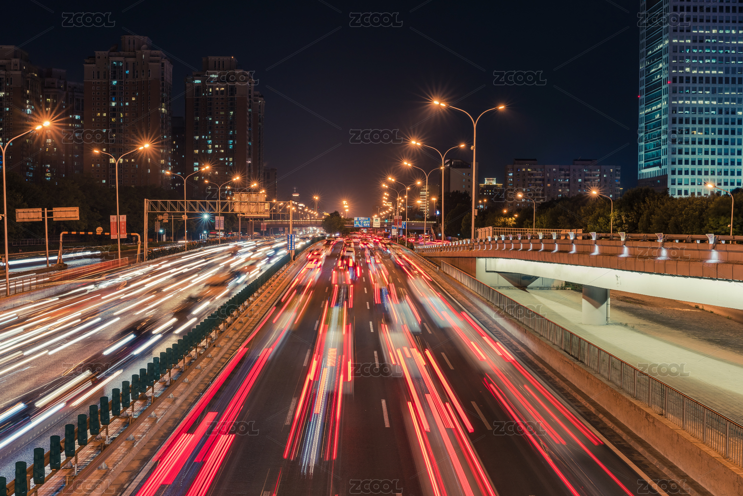 上海陆家嘴金融区建筑夜景和城市街道车流光影轨迹