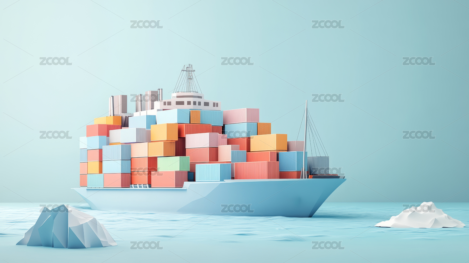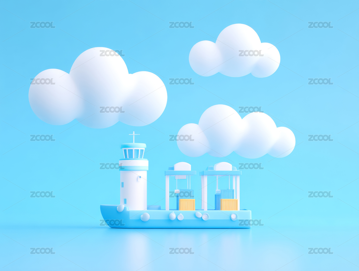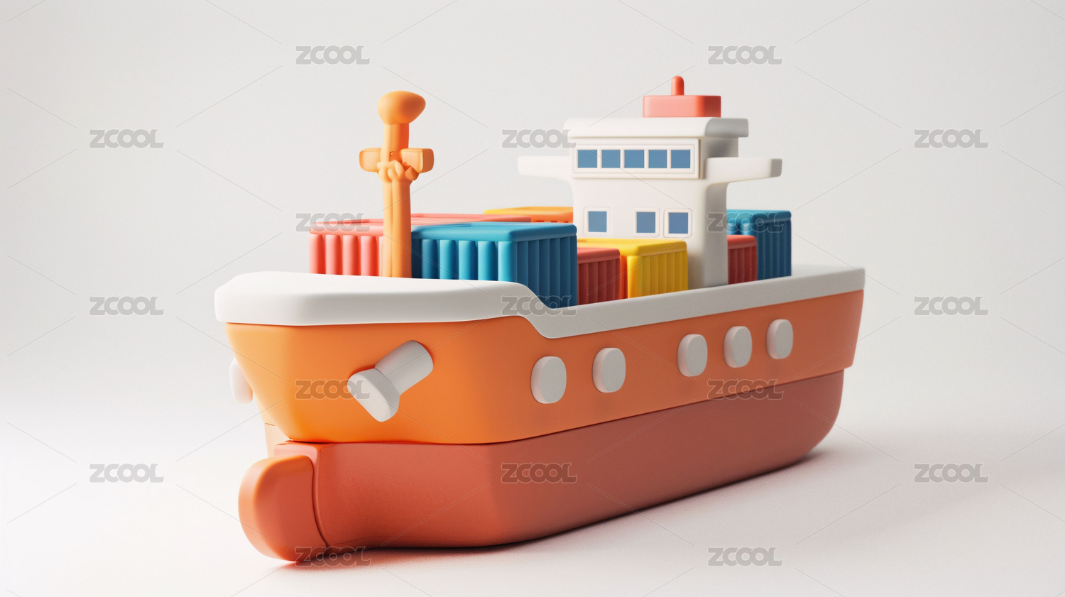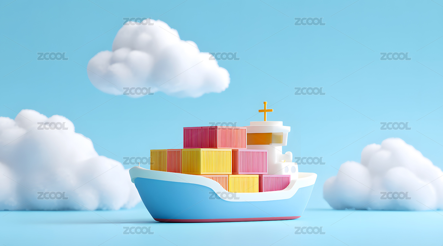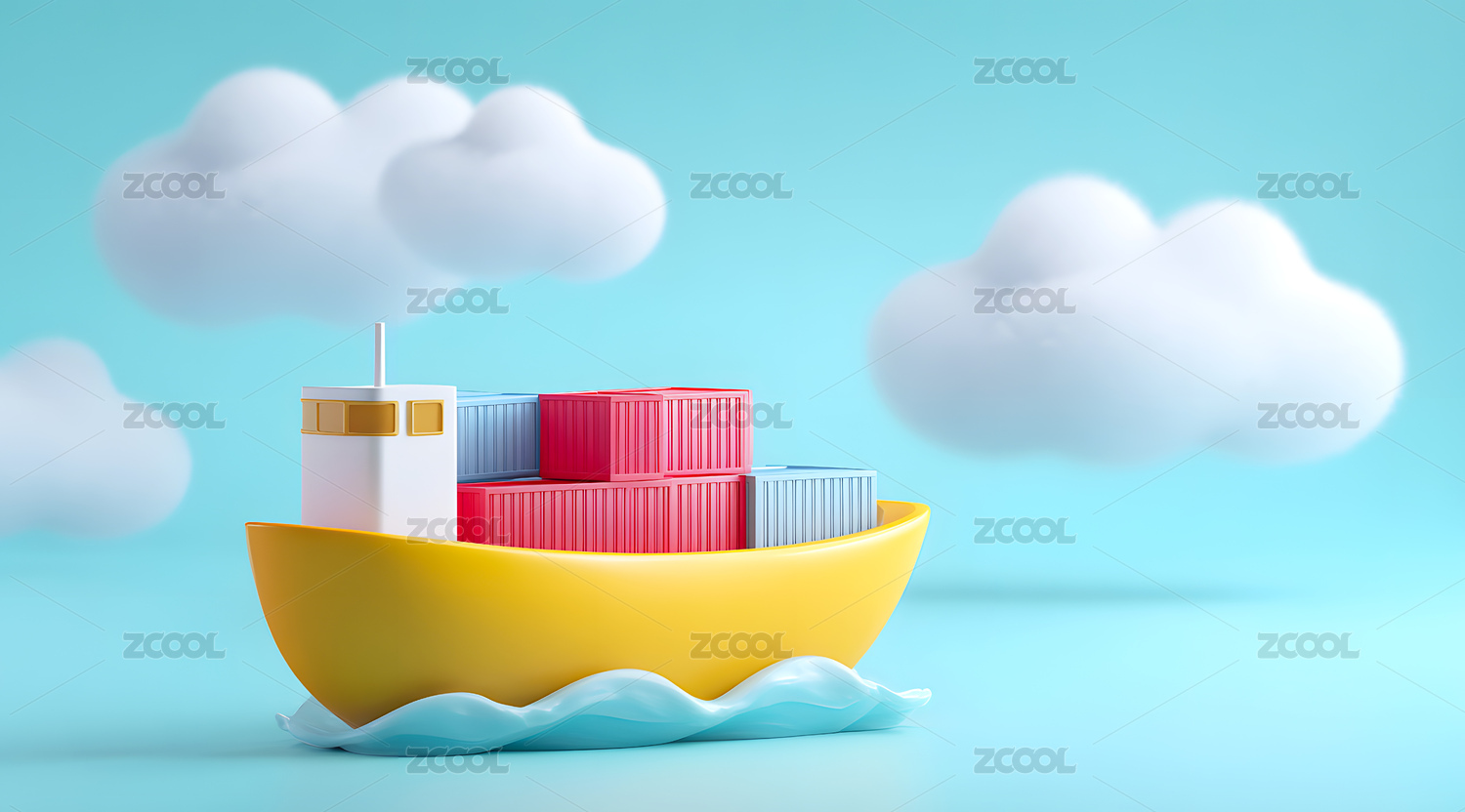 卡通,创意,模型,渲染,3D,海洋,航运,蓝色,黄色,货船