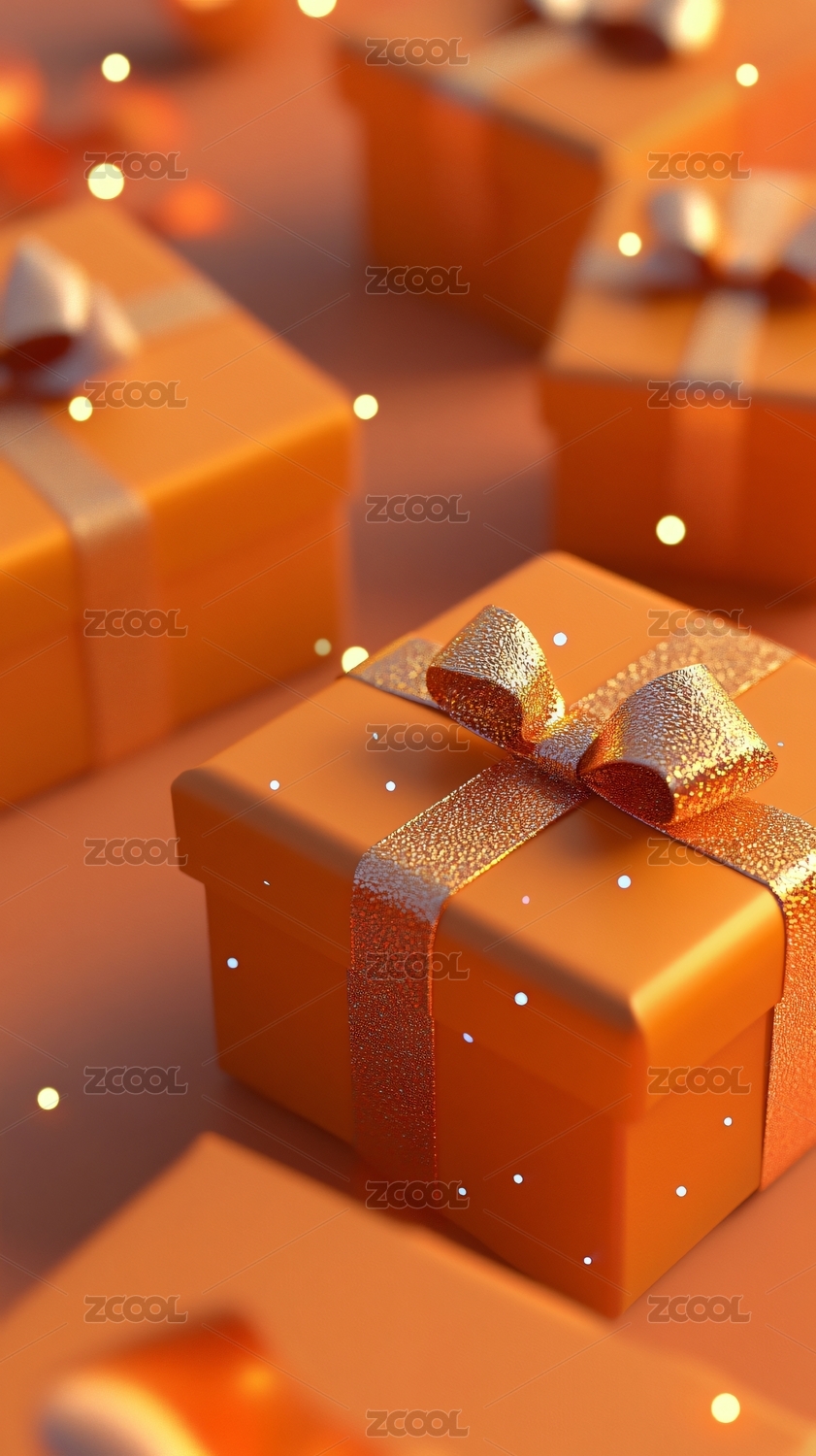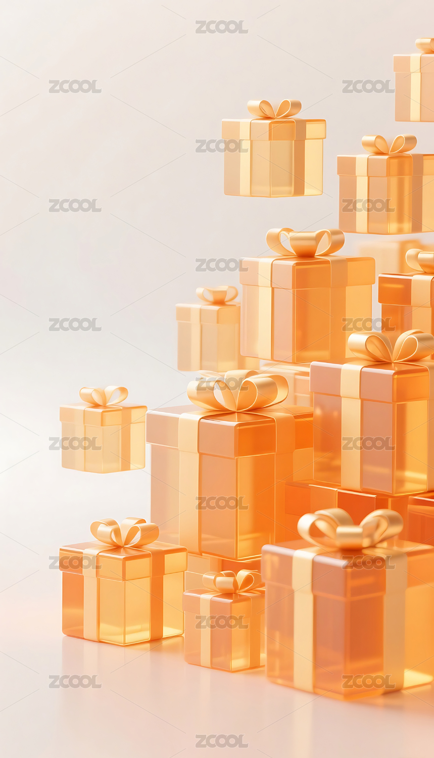 橙色3D立体玻璃质感礼盒背景