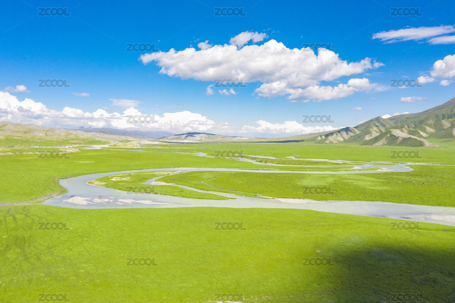 草原河谷河流湿地生态环境航拍