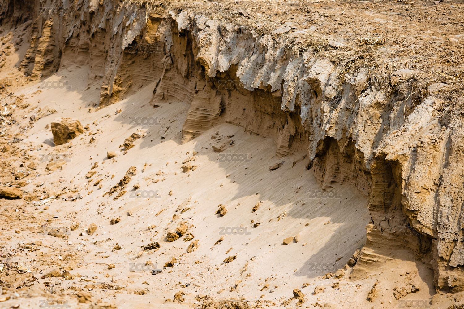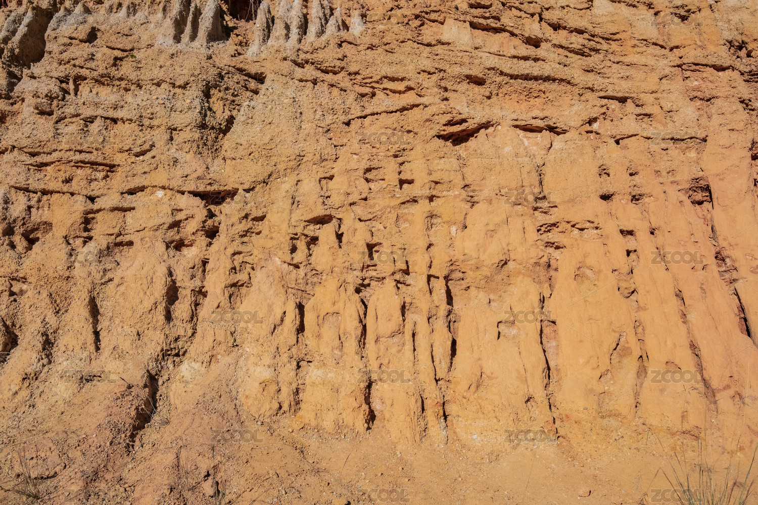 中国甘肃丹山县明长城遗址黄土夯筑城墙特写