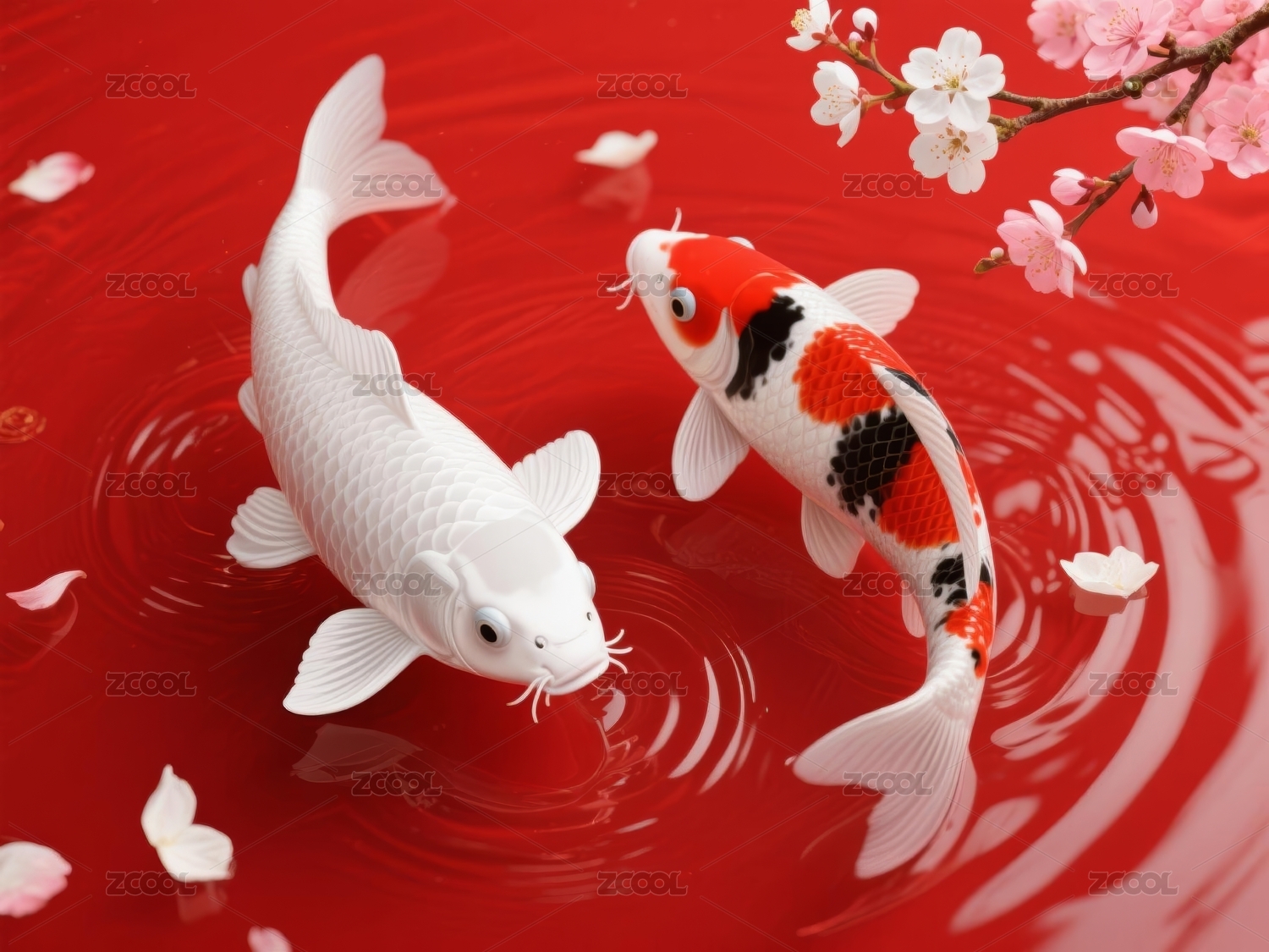 锦鲤,金鱼,红色,背景,喜庆,好运,春节,过年,立体,俯视