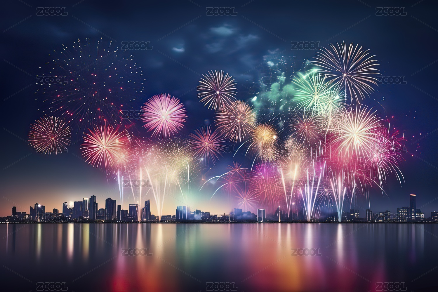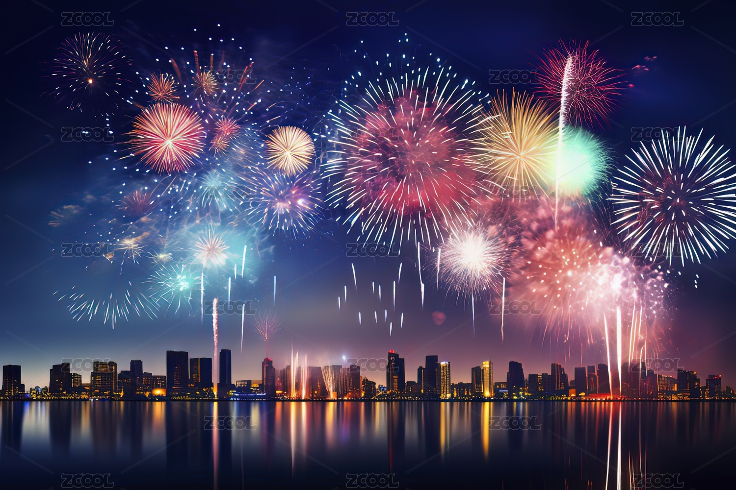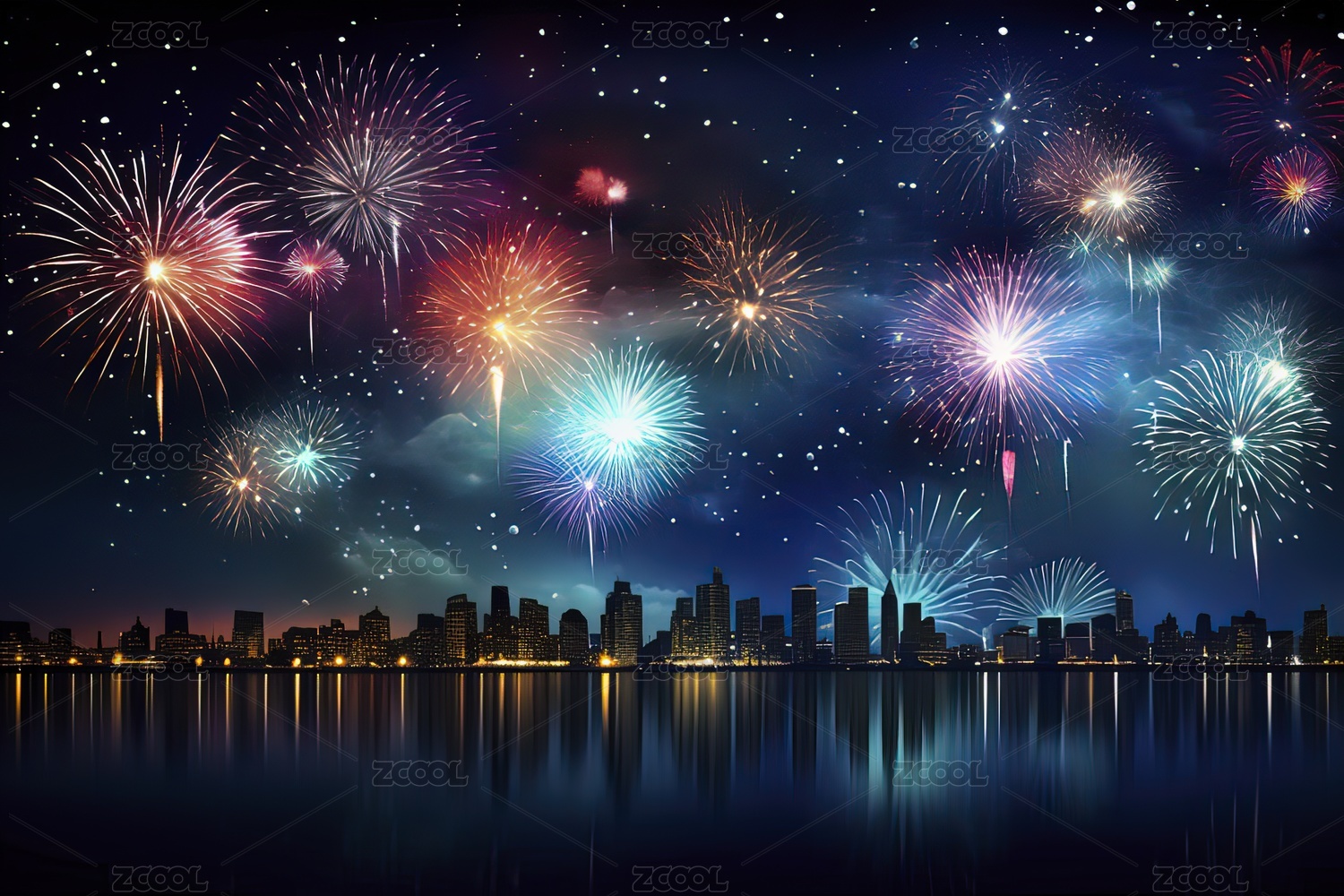 夜幕下城市烟花璀璨绽放