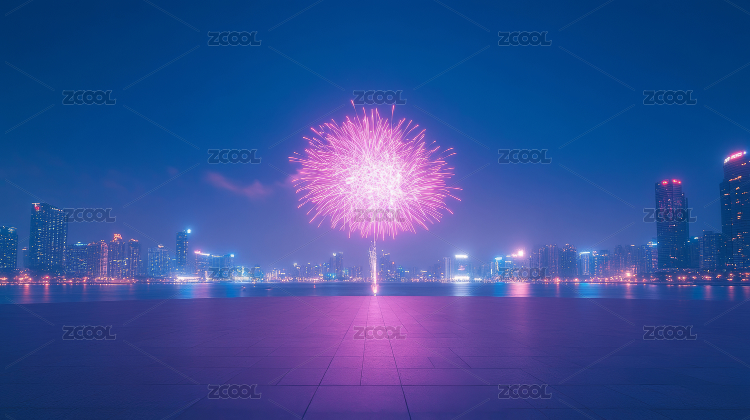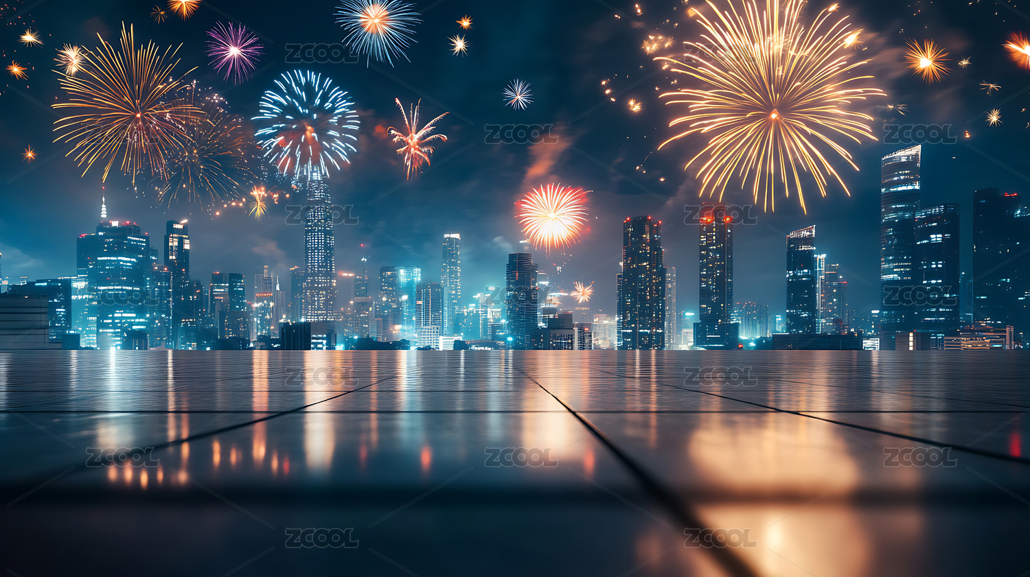 璀璨烟火下的都市夜景