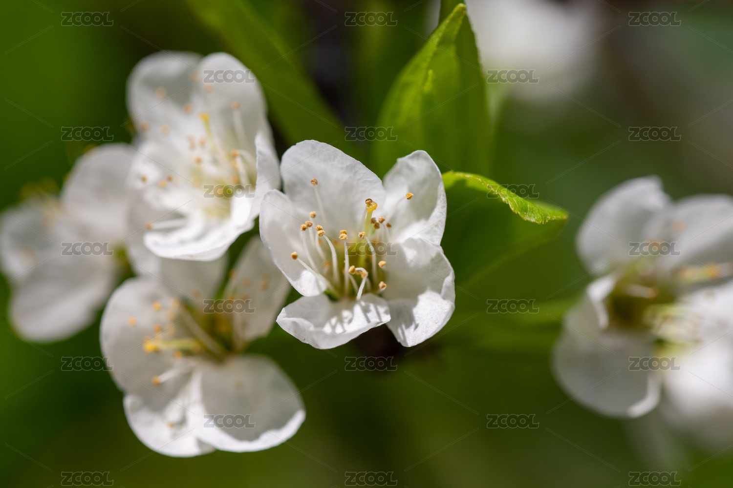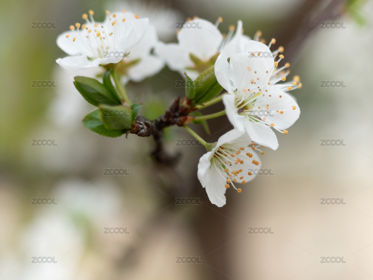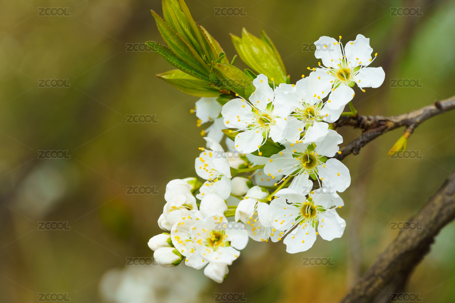 春暖花开,绽放的白色紫叶李花瓣的特写
