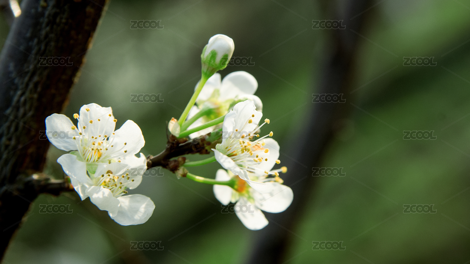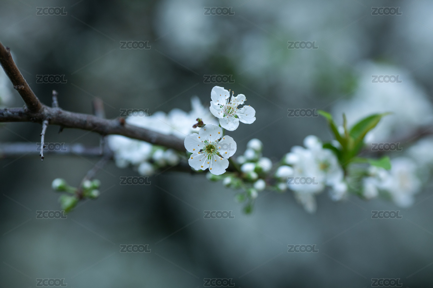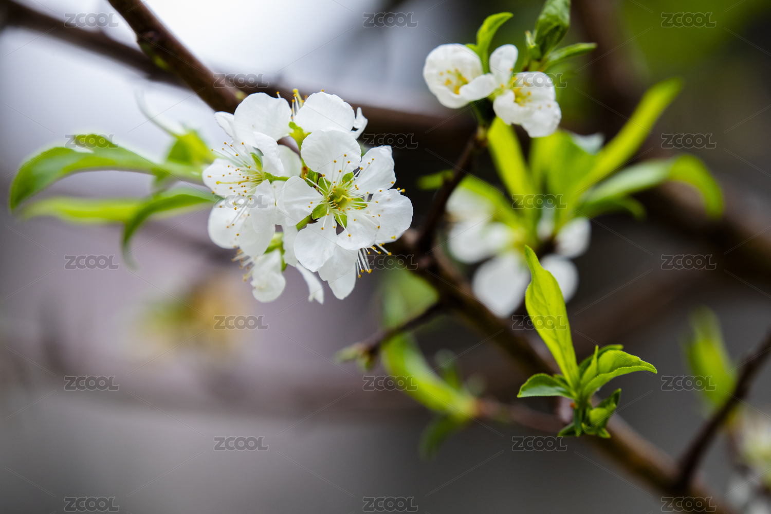 春暖花开,绽放的白色紫叶李花瓣的特写