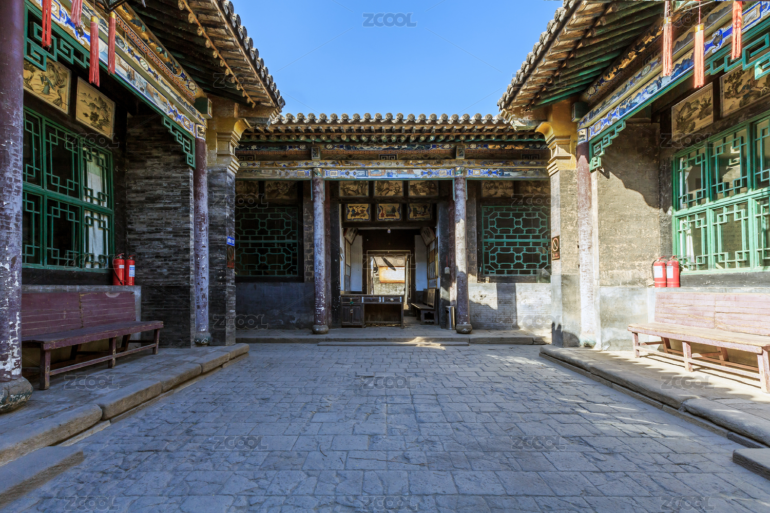 山西平遥古城内日升昌票号内的四合院古民居建筑