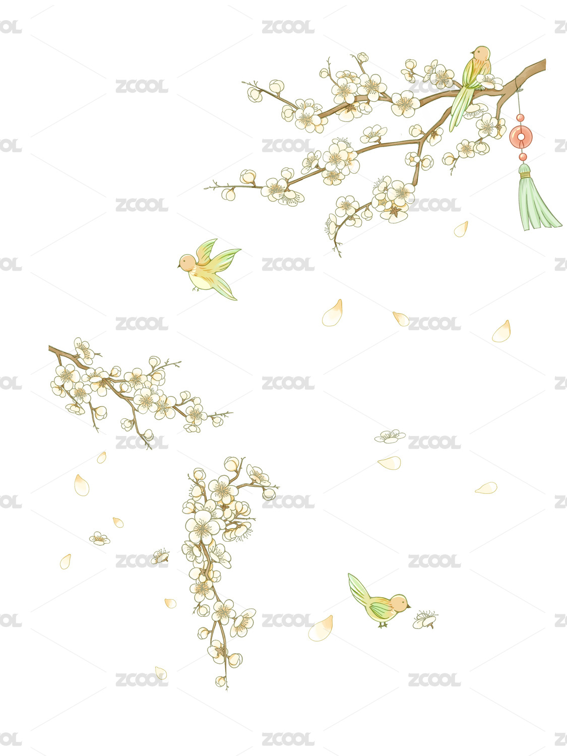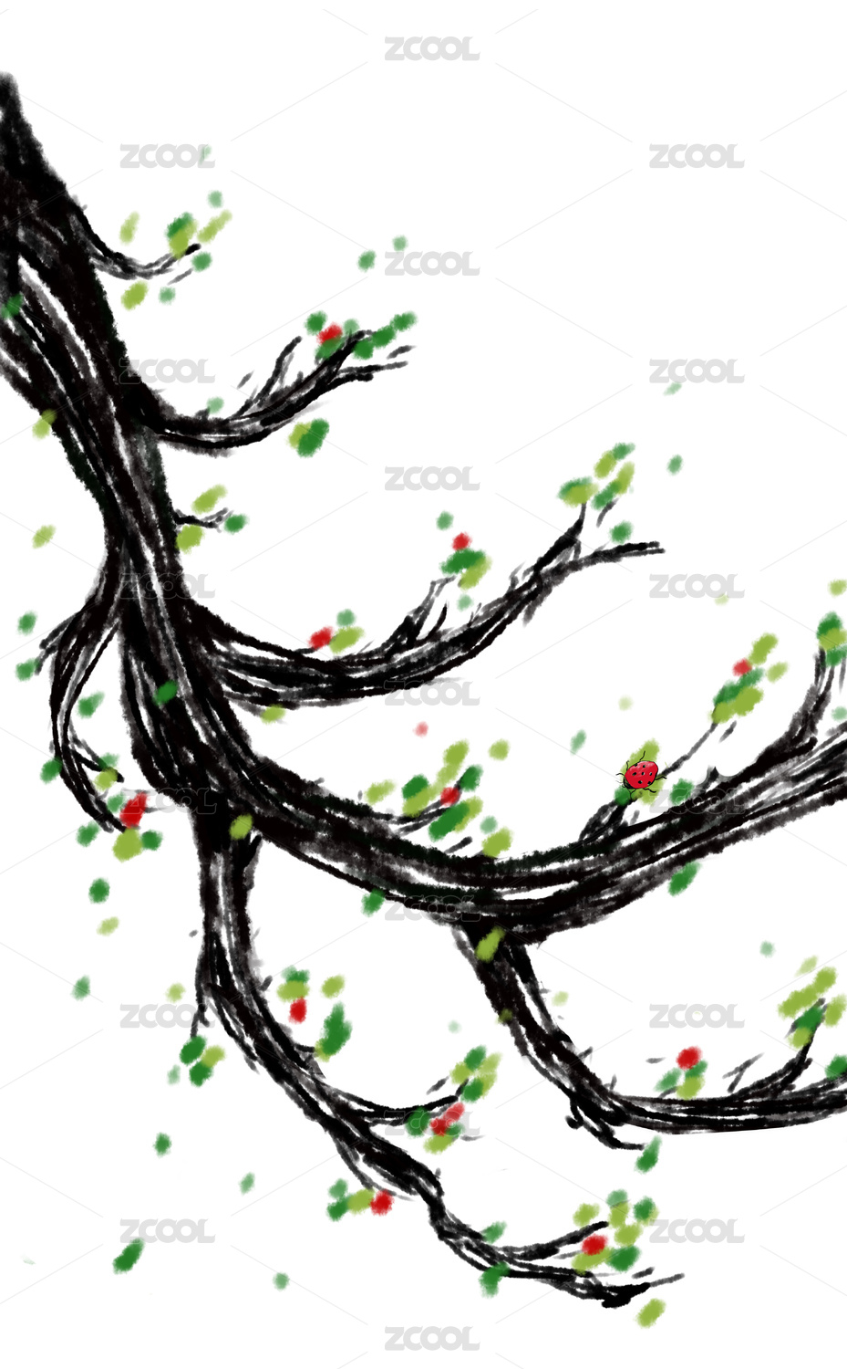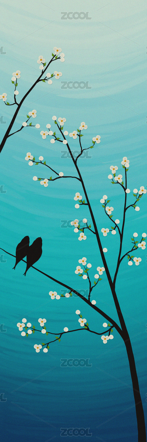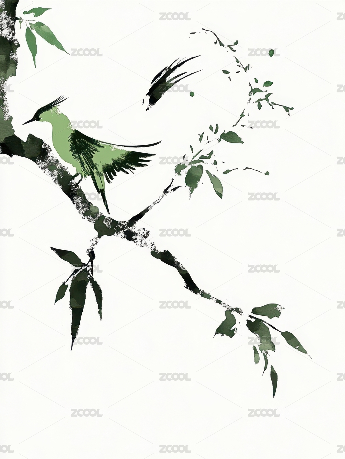 插画,水墨,中国画,新中式,竖幅,装饰画,书签,花鸟画,自然,户外