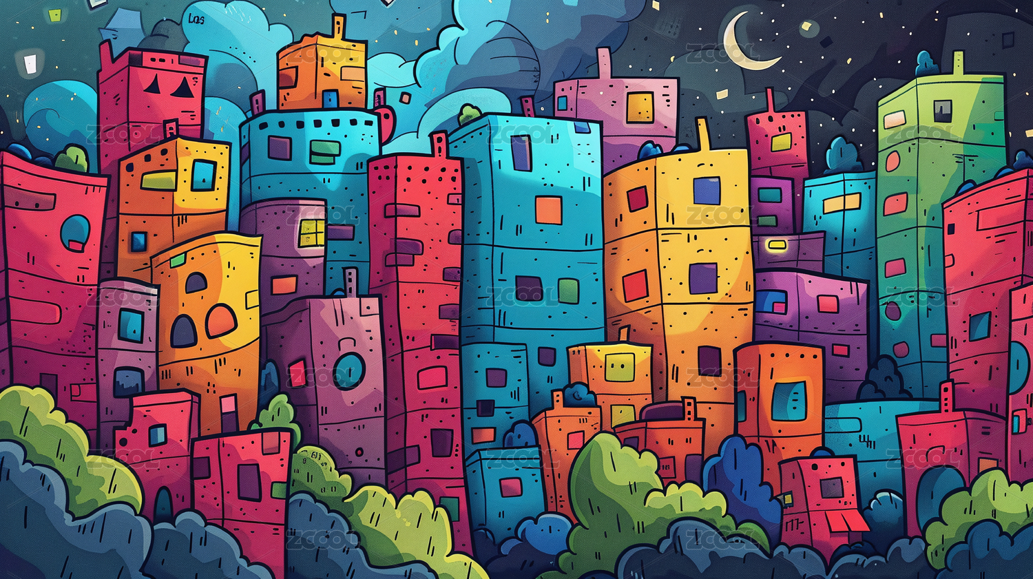 多巴胺快乐艺术感黑线条抽象几何城市背景