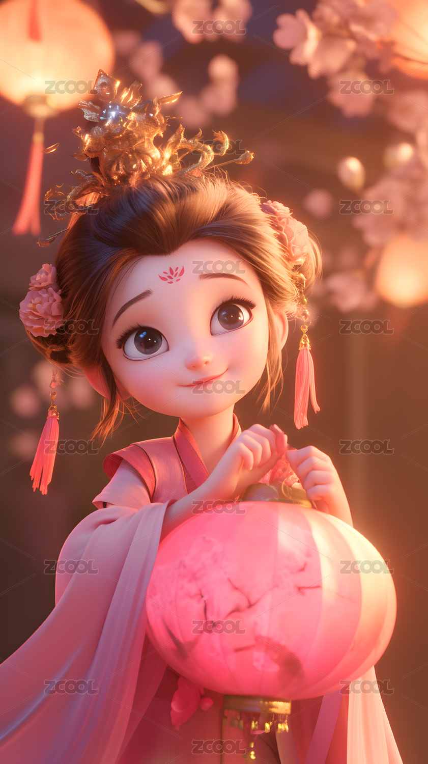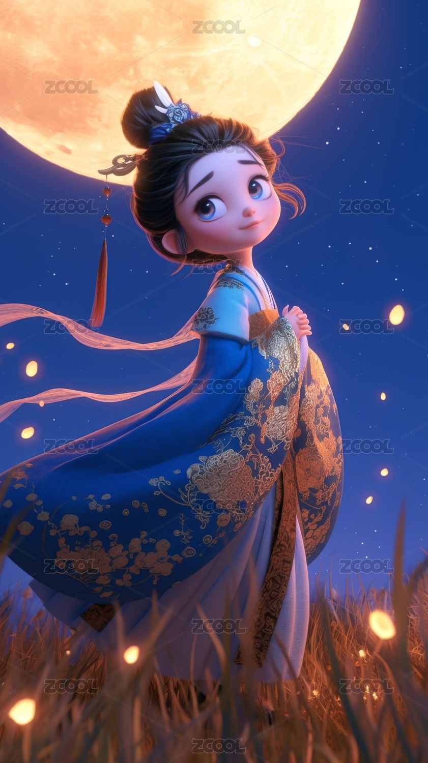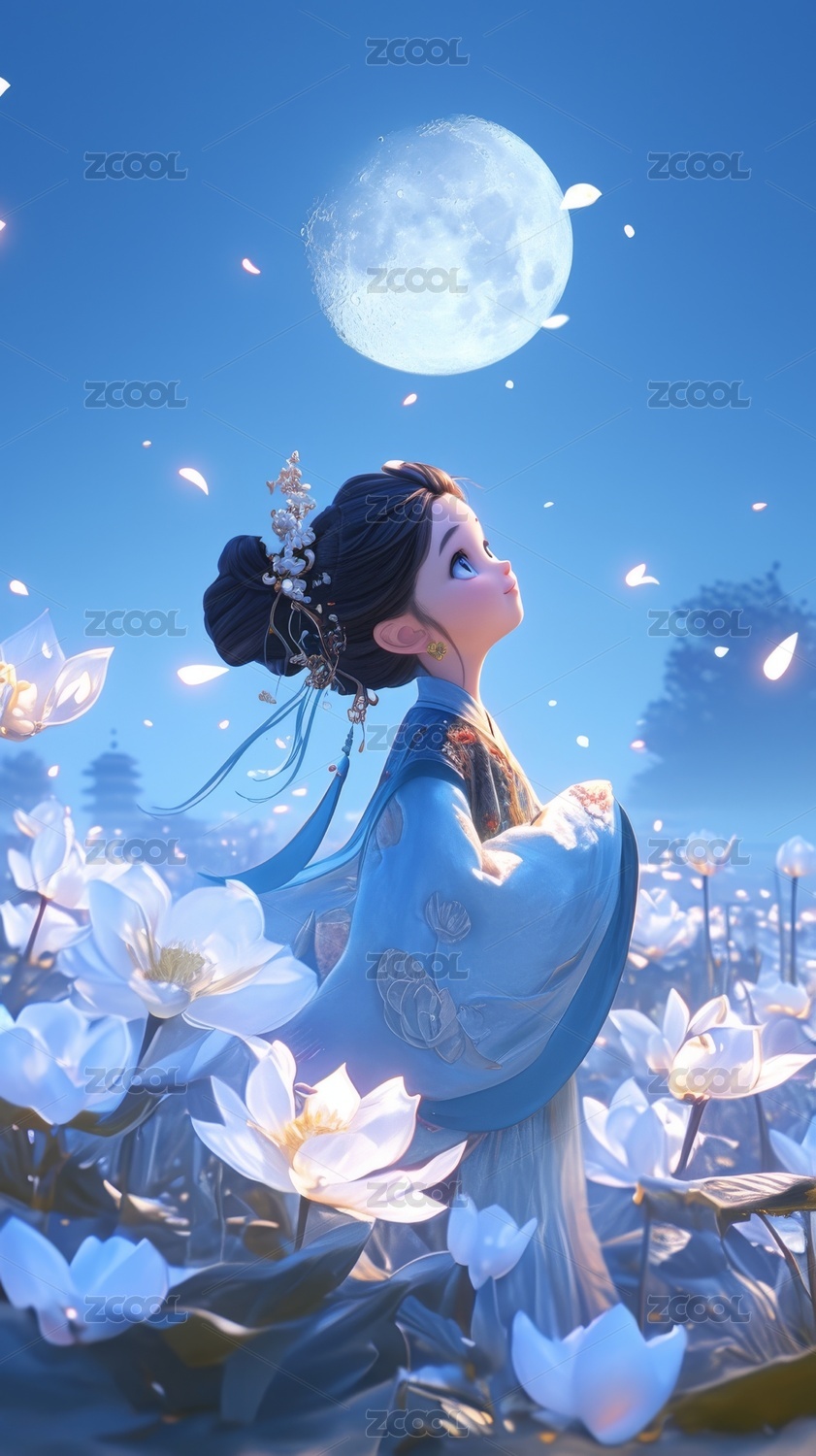 中秋节古风美女中国风七夕节中秋节女孩3D