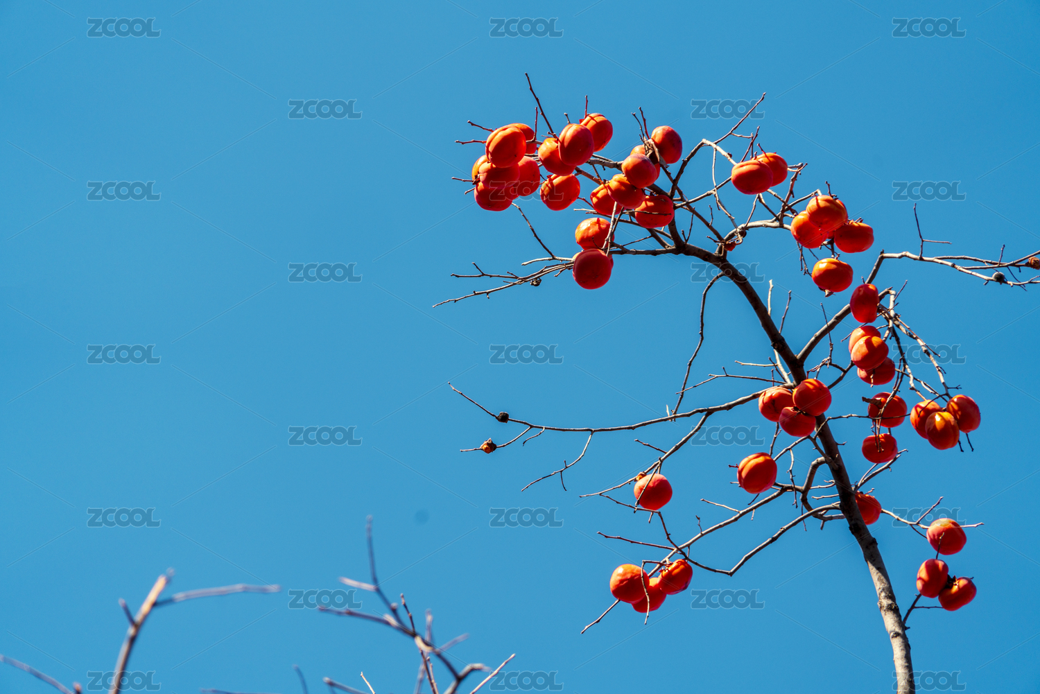 自然,白昼,早晨,柿子,秋天,蓝天,植物,无人,树,生长