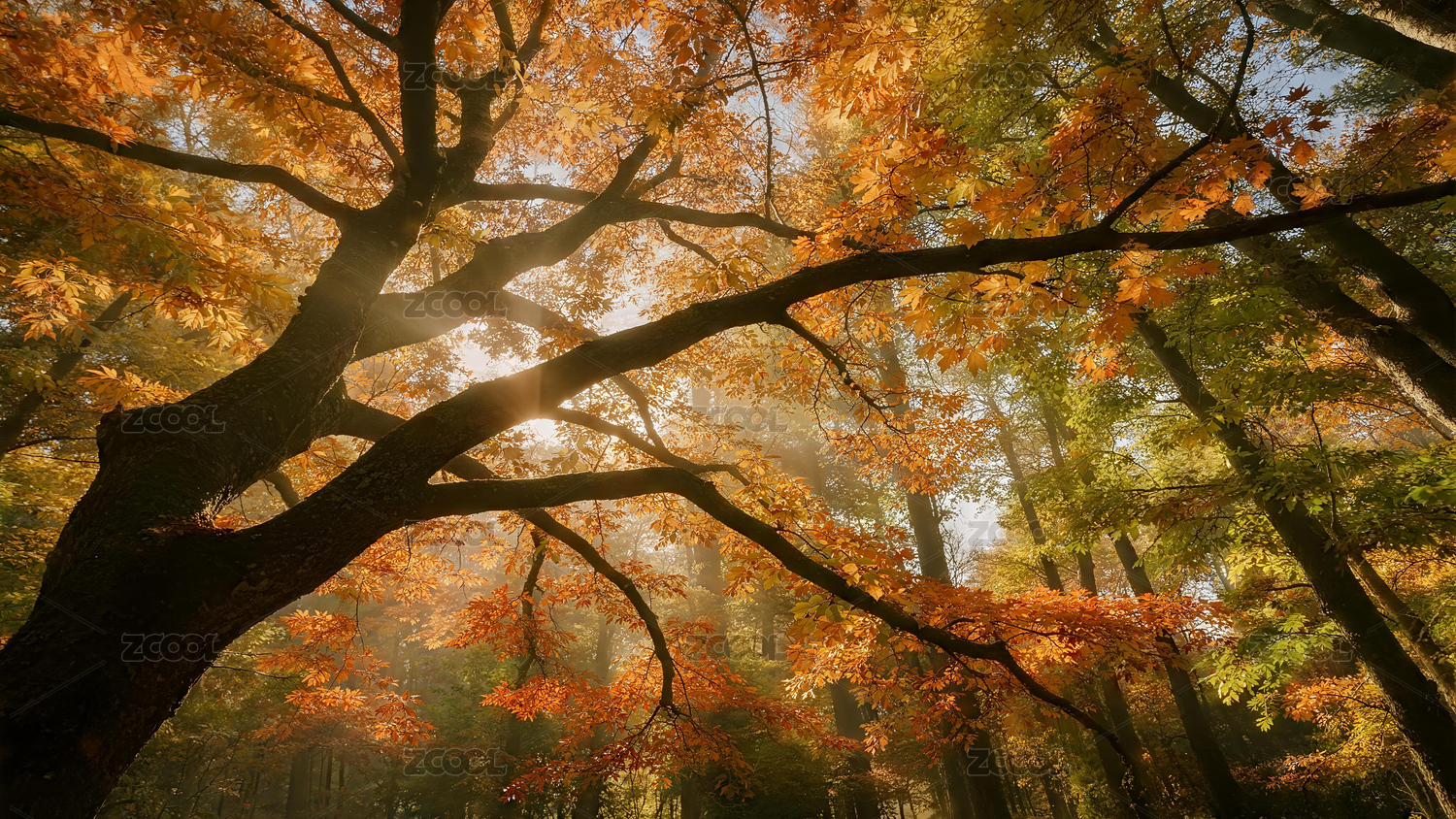 中国北京地坛秋天几株金黄元宝枫仰拍视角
