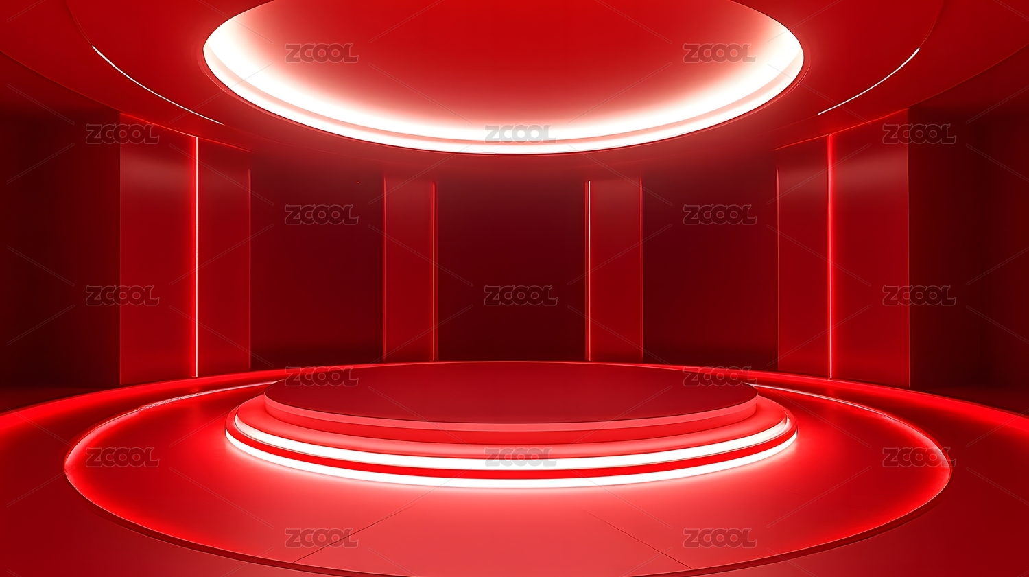 红色光效圆形展台科技场景