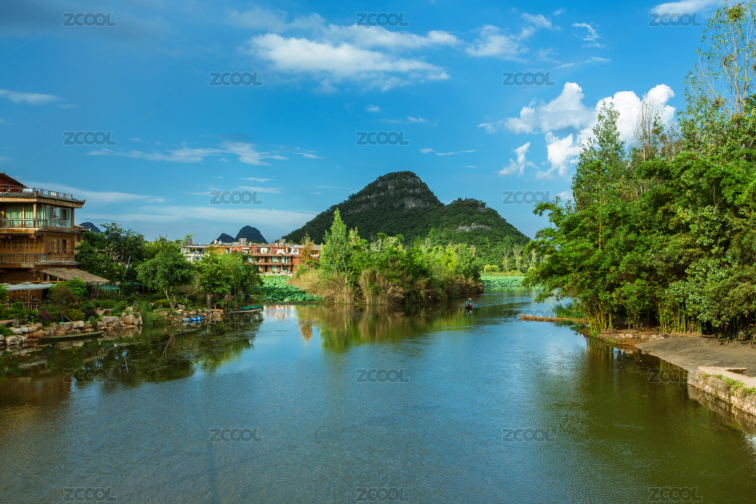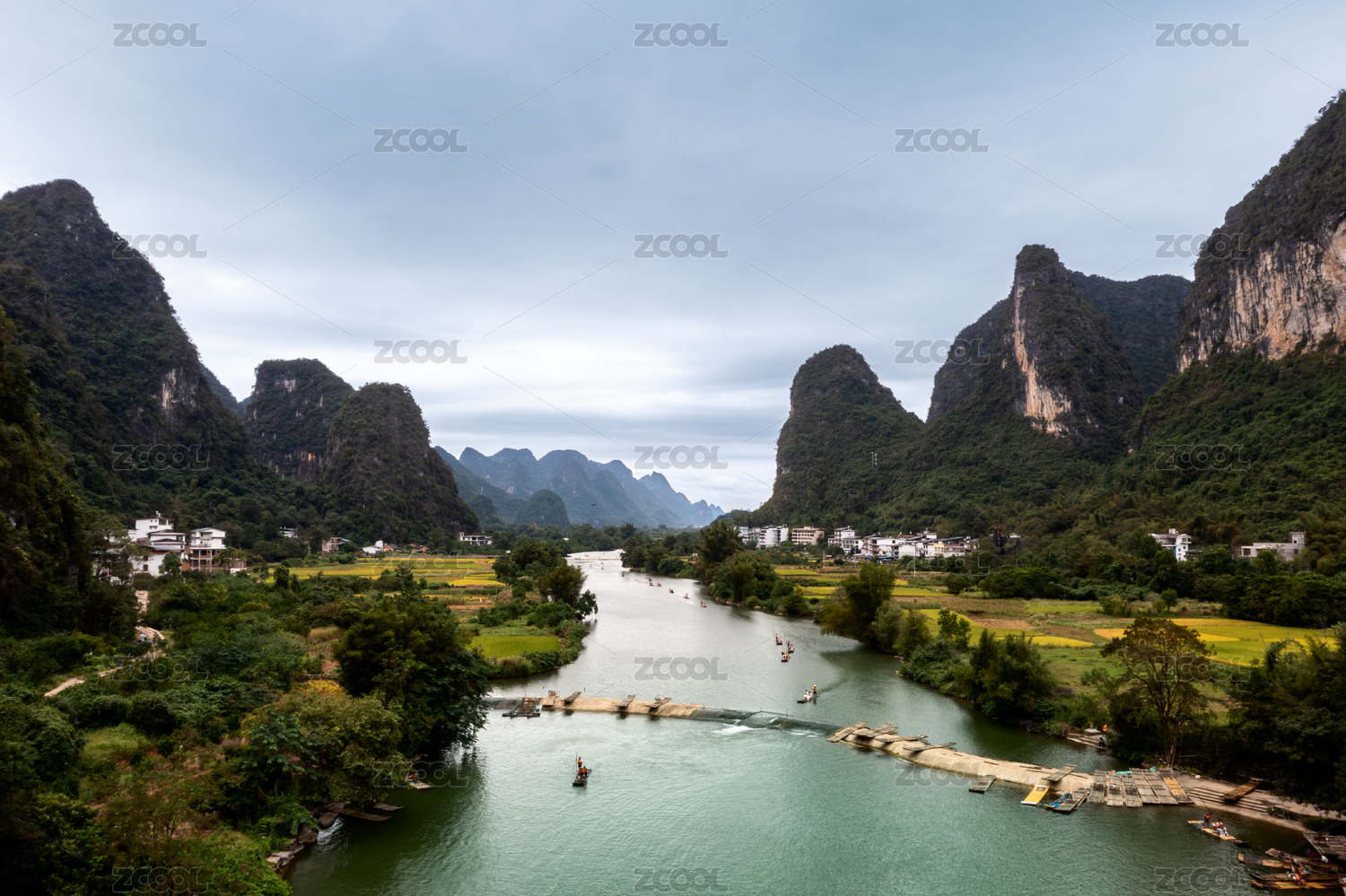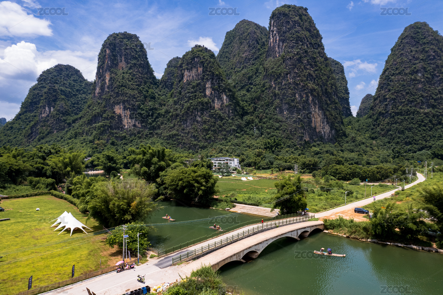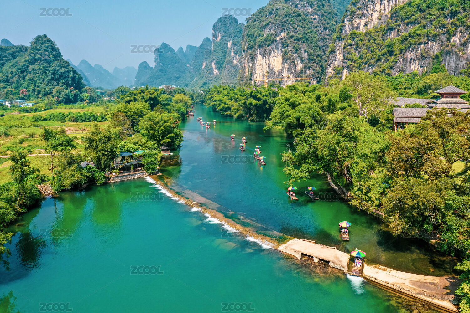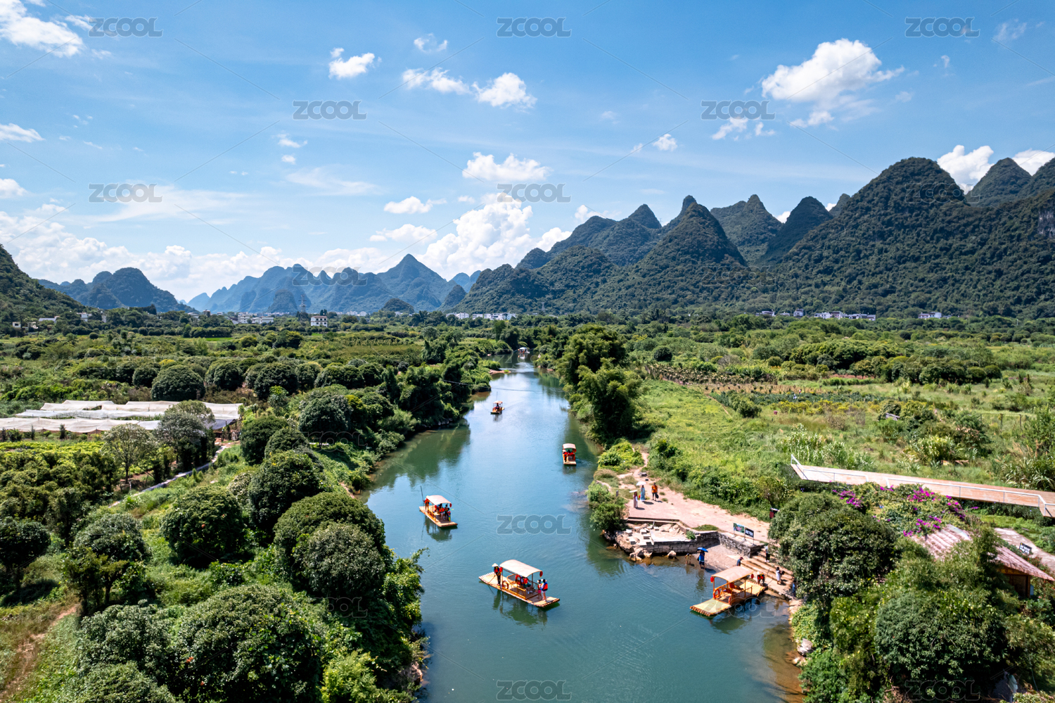 桂林阳朔漓江沿岸遇龙河自然风光山水航拍