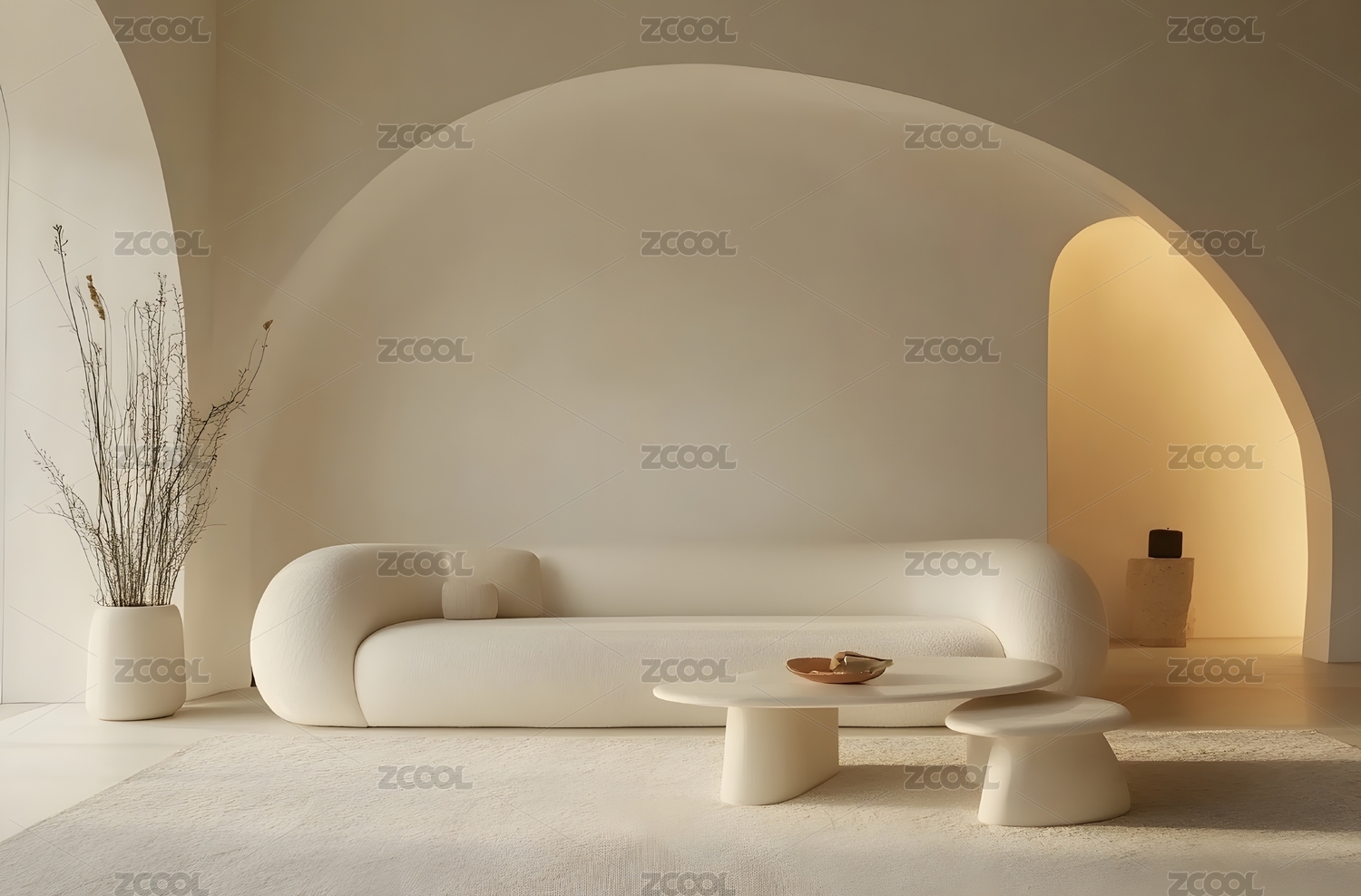 现代简约室内设计弧形门洞与柔和色调