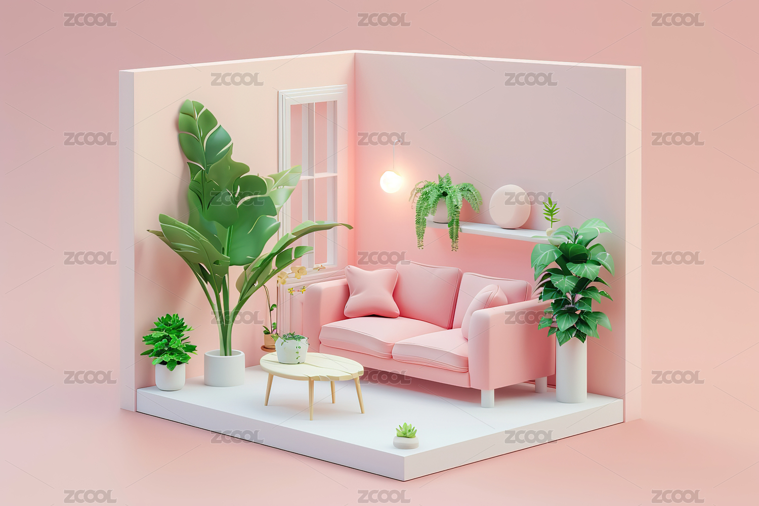 极简家具家居3D场景白色背景