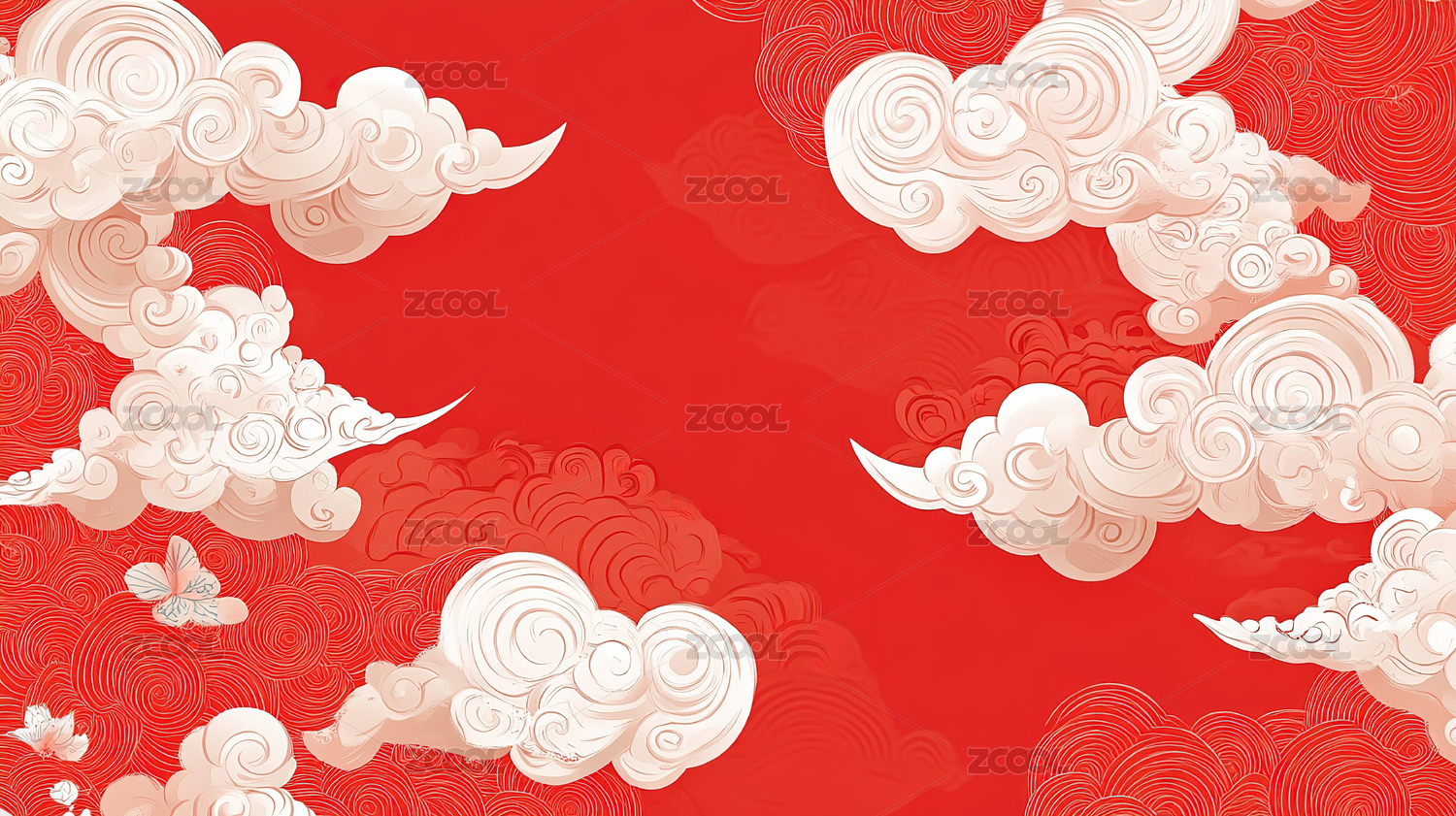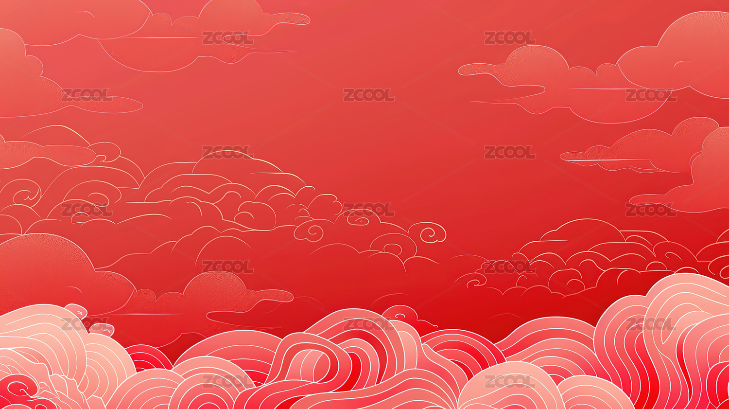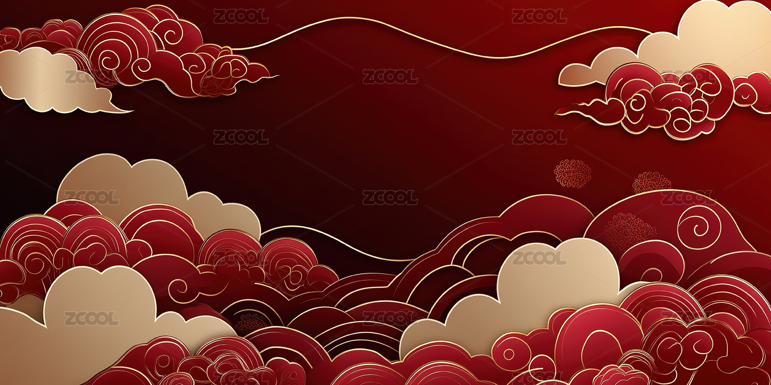 红色背景下祥云图案的特写