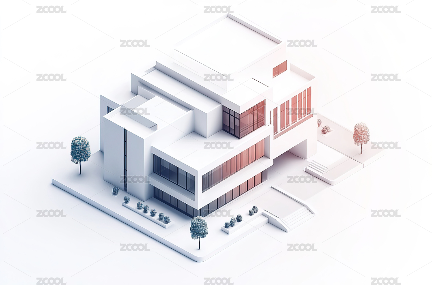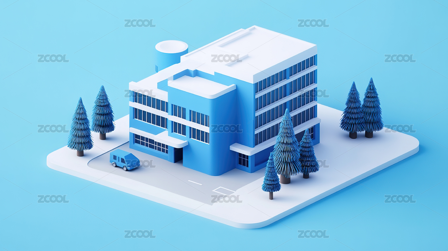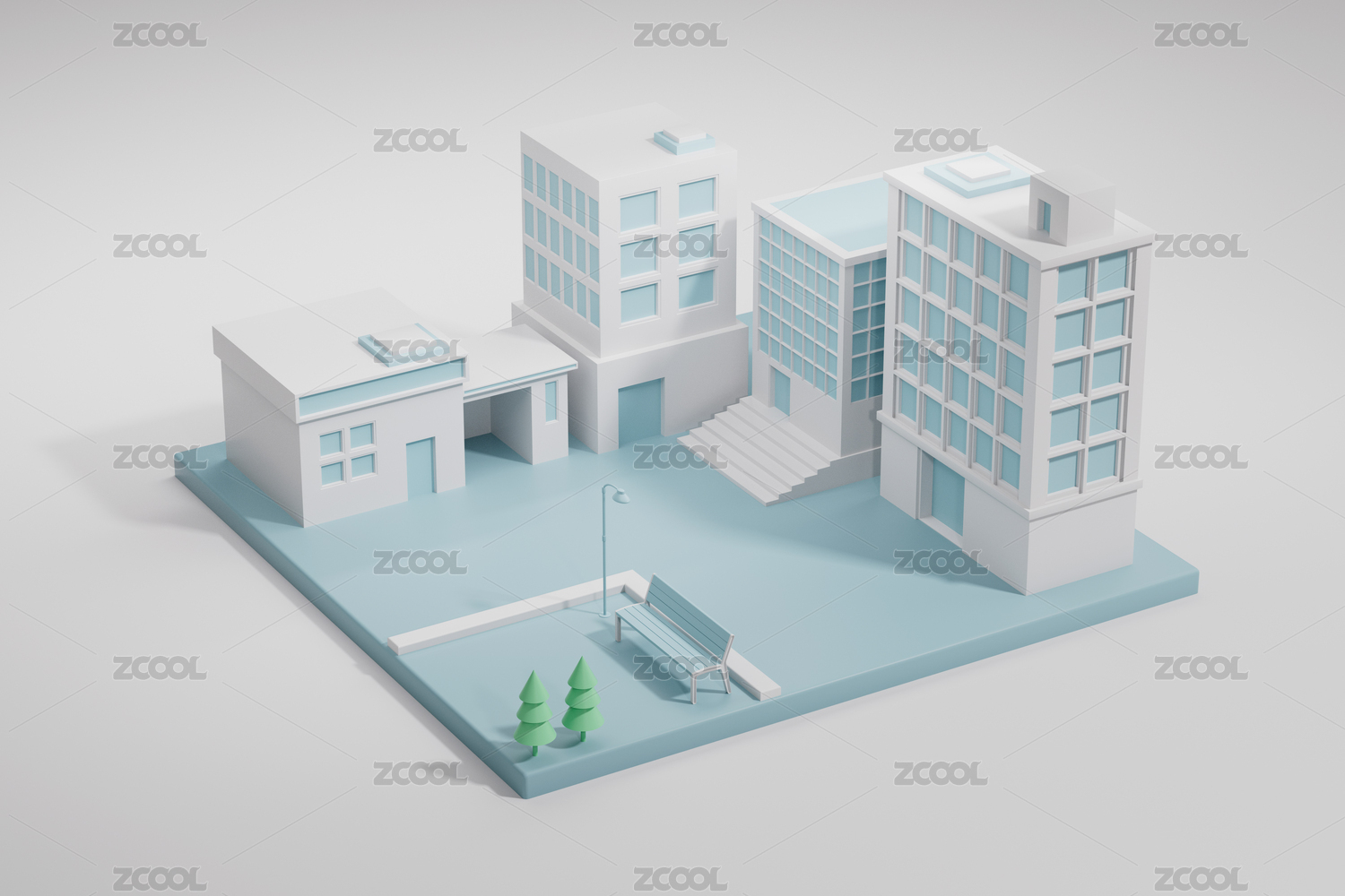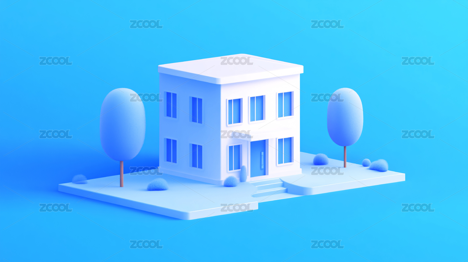 蓝色背景下的模型房屋和建筑物的高角度视图