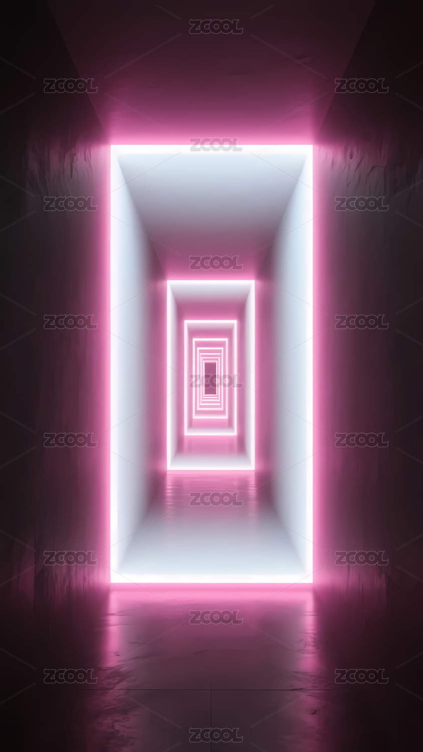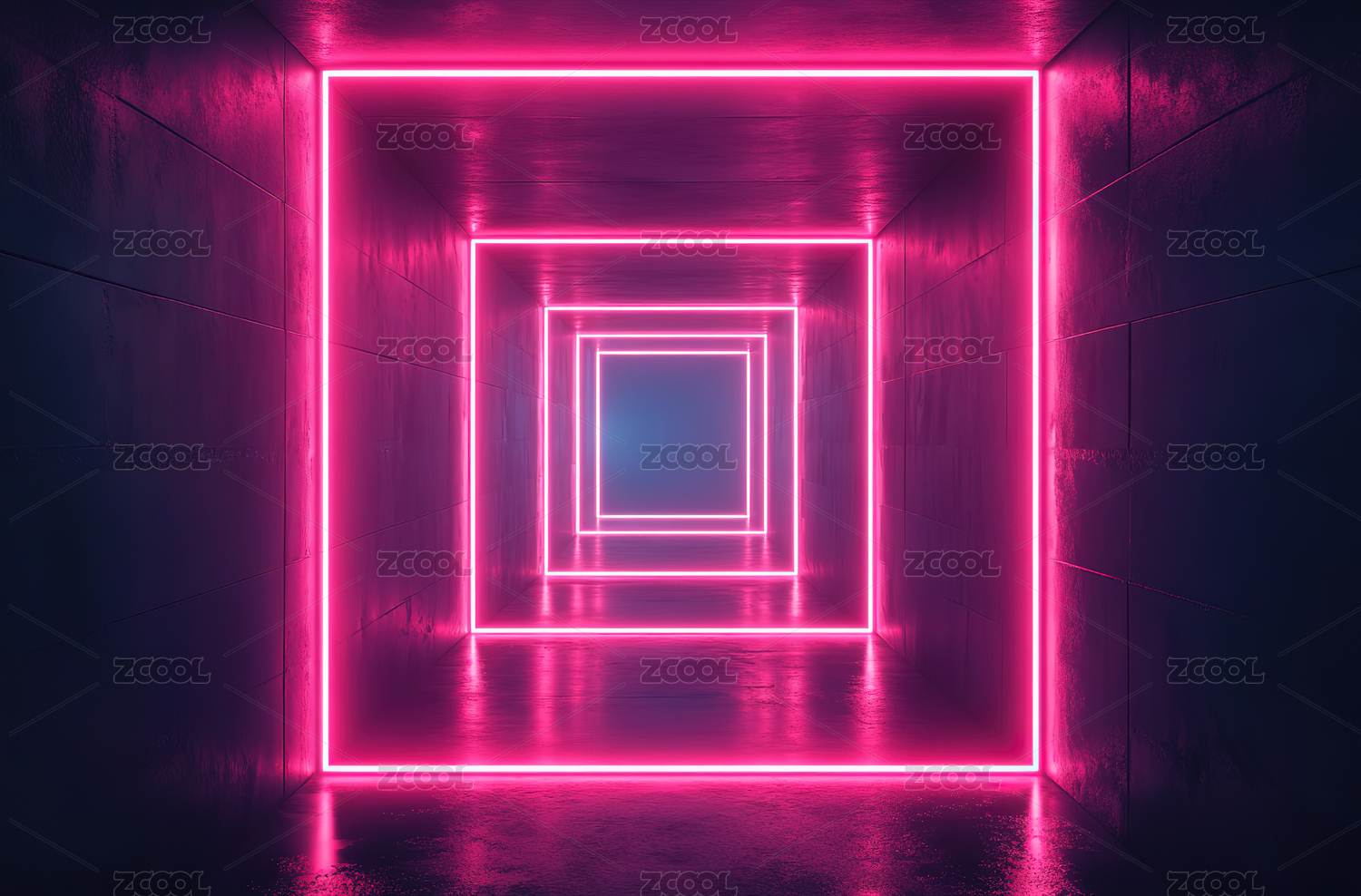霓虹光效方形隧道