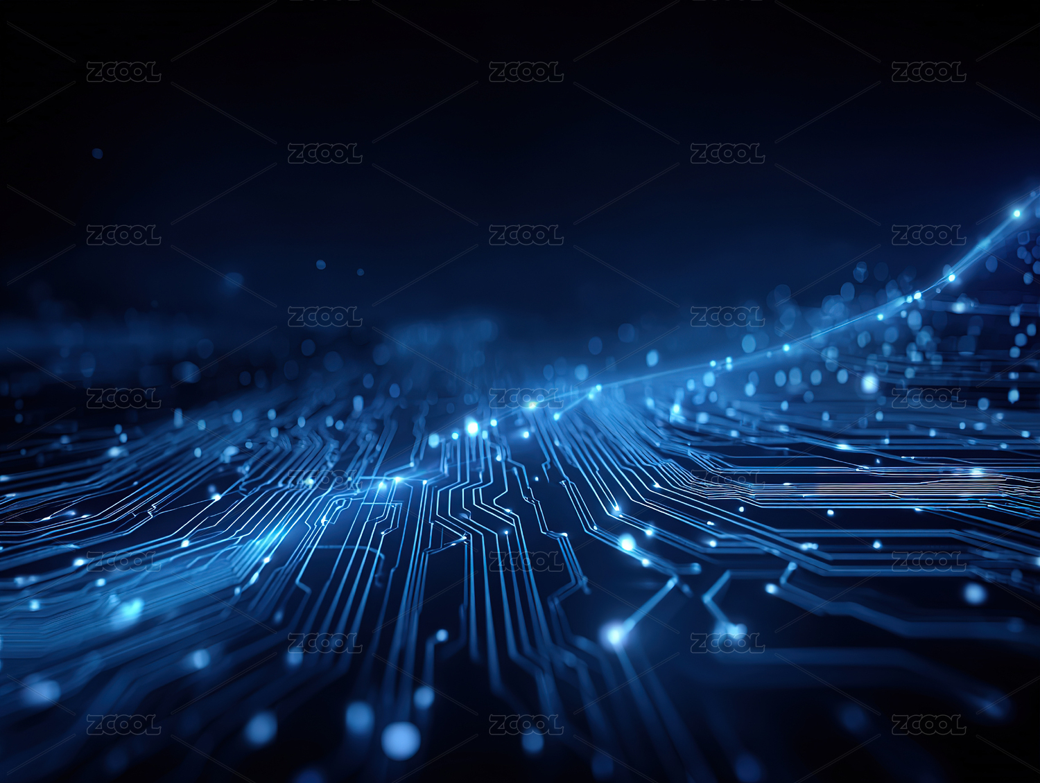 蓝色电路板光效抽象图