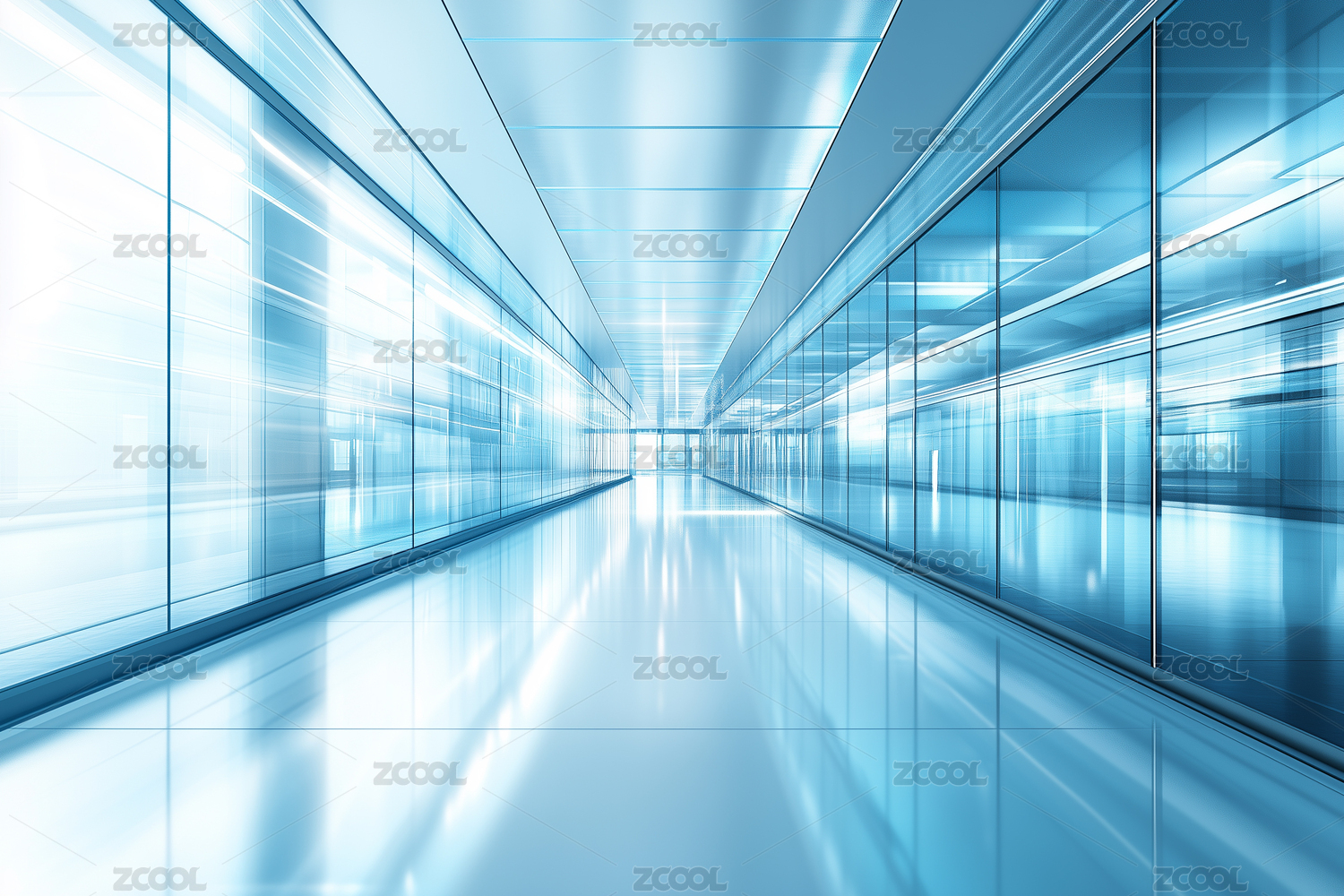 模糊光影的现代走廊景象