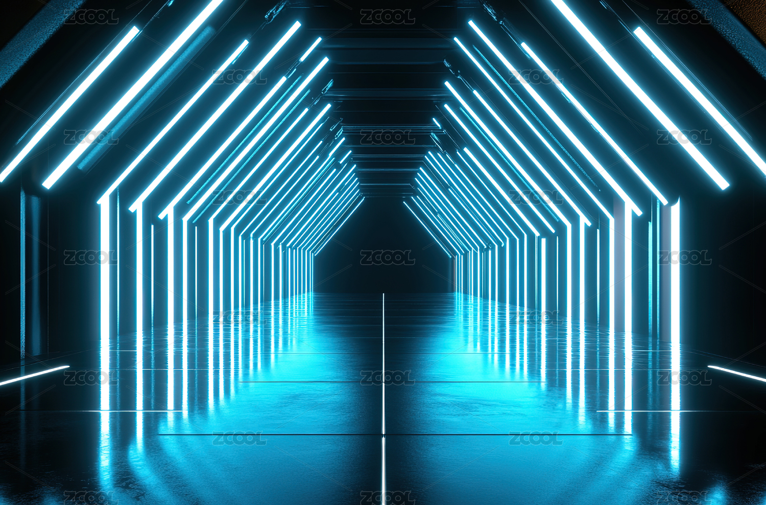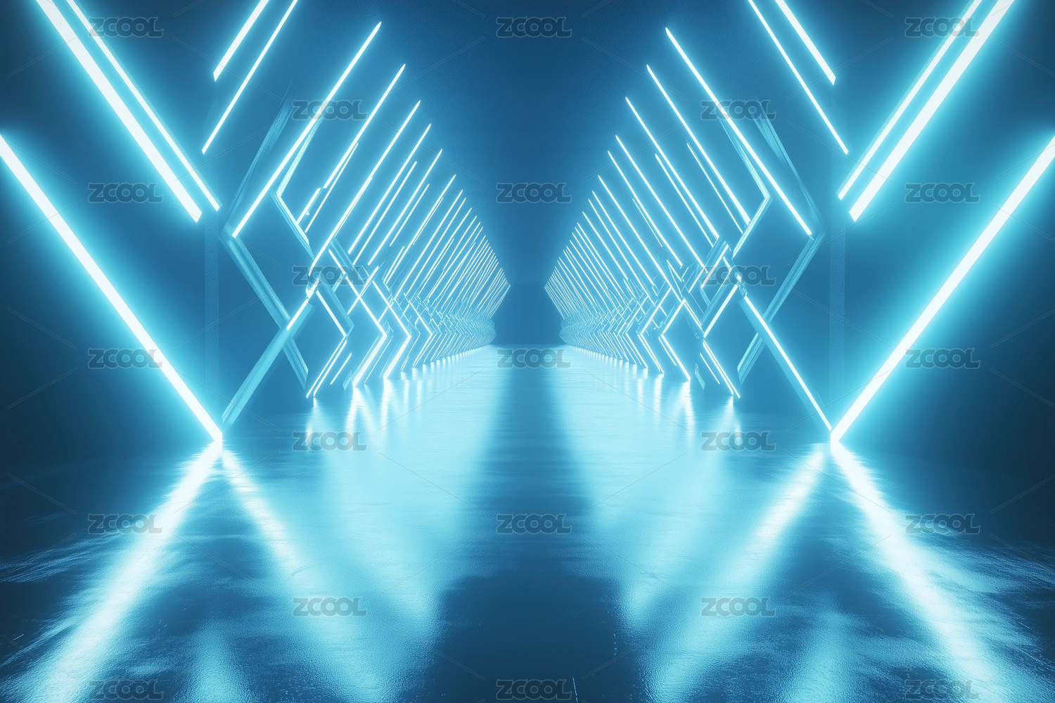 蓝色光束构成的三角隧道