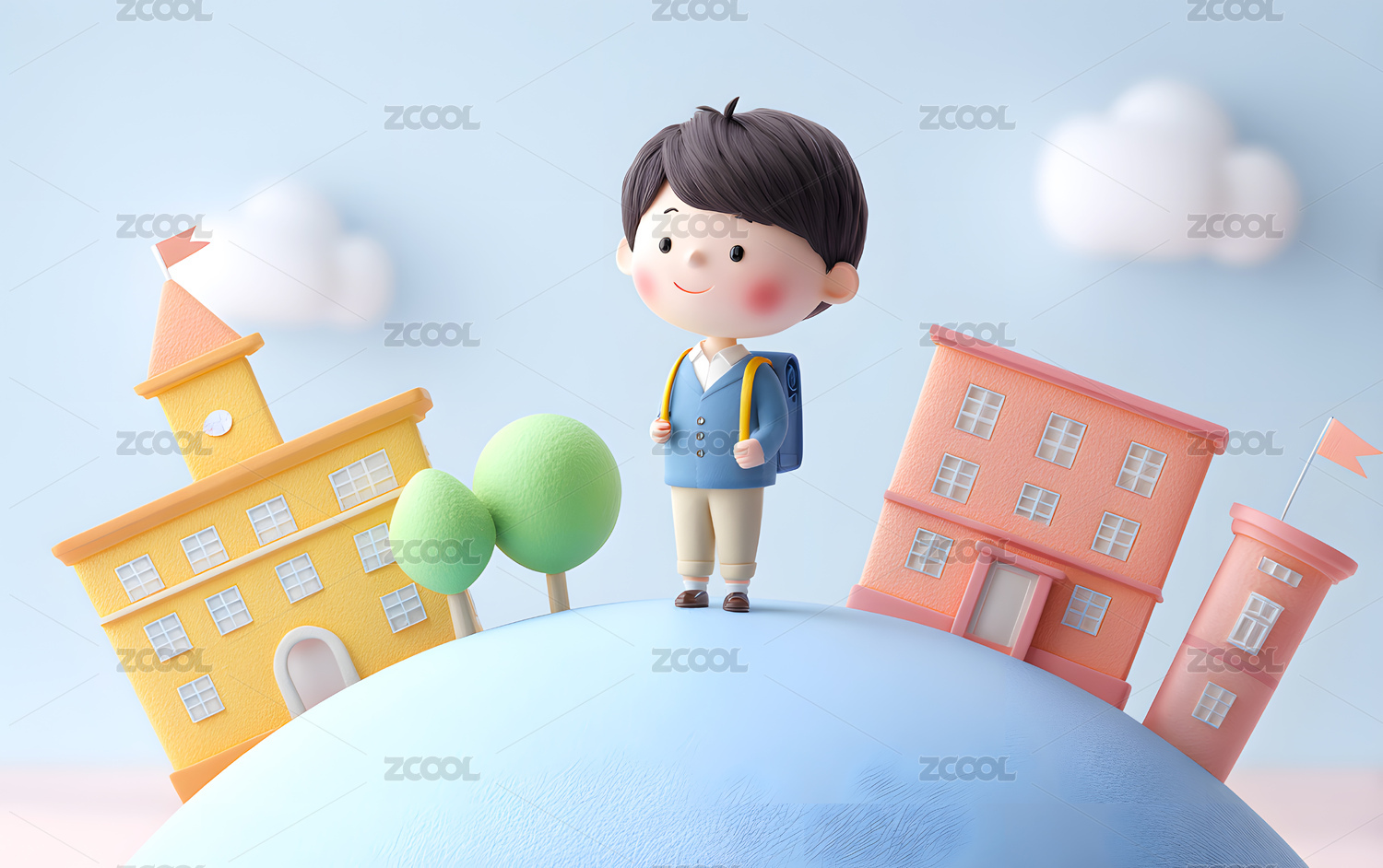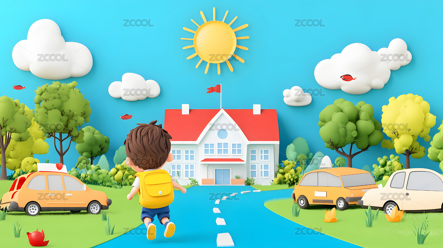 上学,学习,学校,幼儿园,小学,孩子,宝宝,早晨,开心,卡通