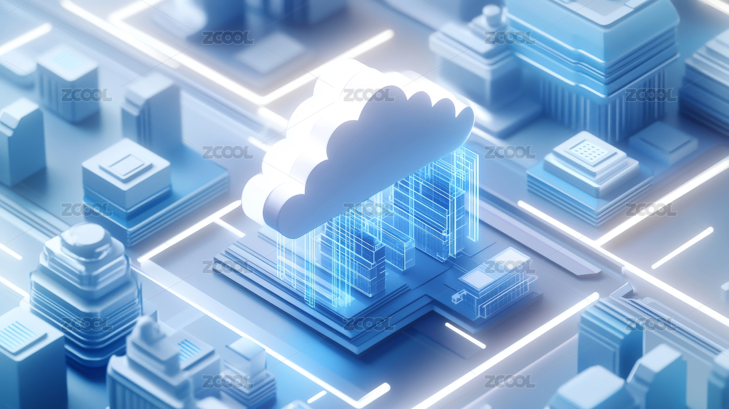 云朵悬浮于科技平台之上