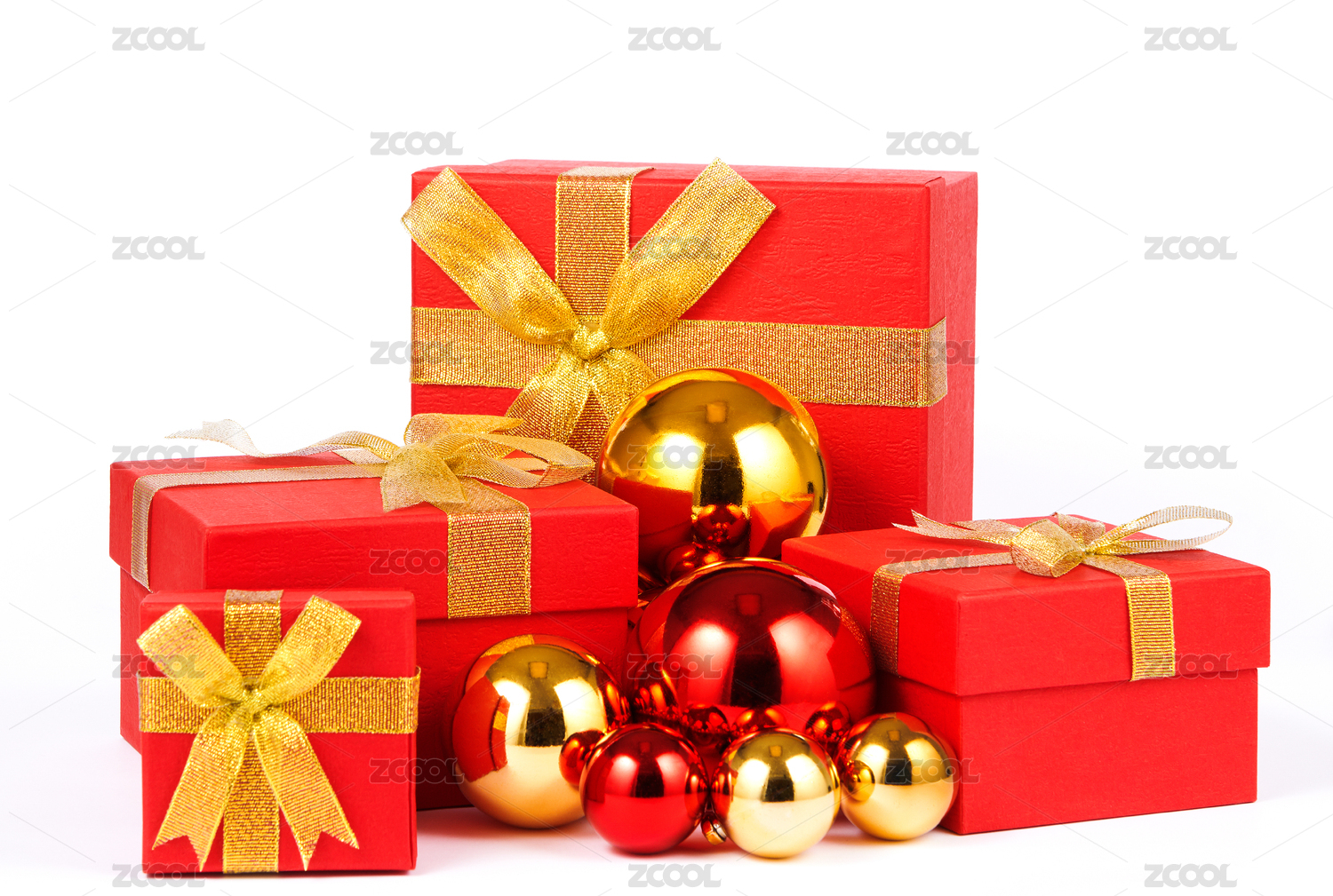 圣诞节装饰,圣诞礼盒和彩色的圣诞球在室内