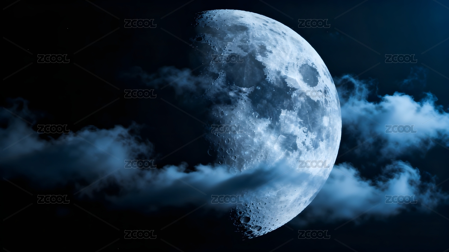 夜空中的月亮与云层环绕