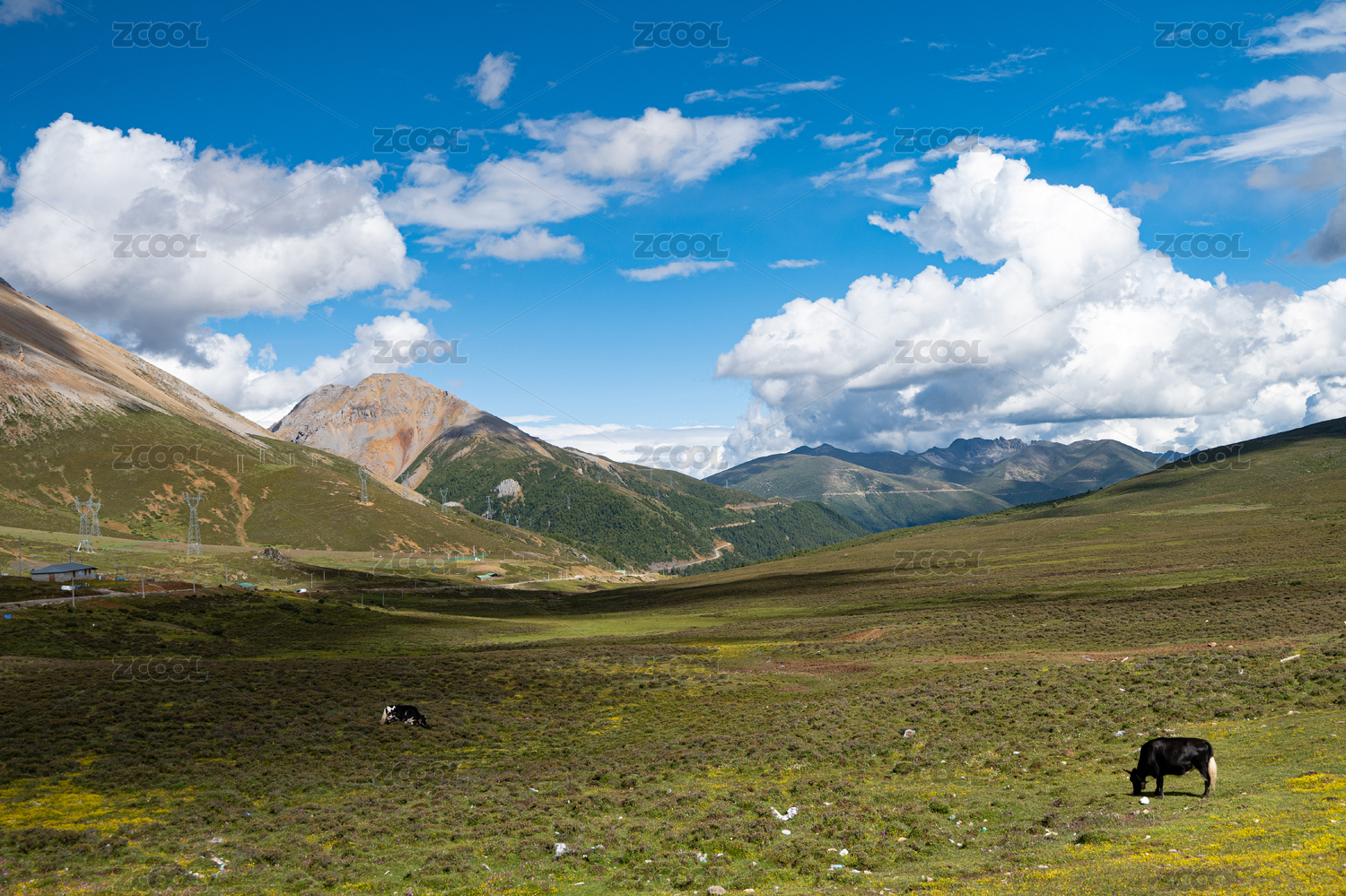 中国西藏拉萨当雄青藏铁路旁辽阔的牧场