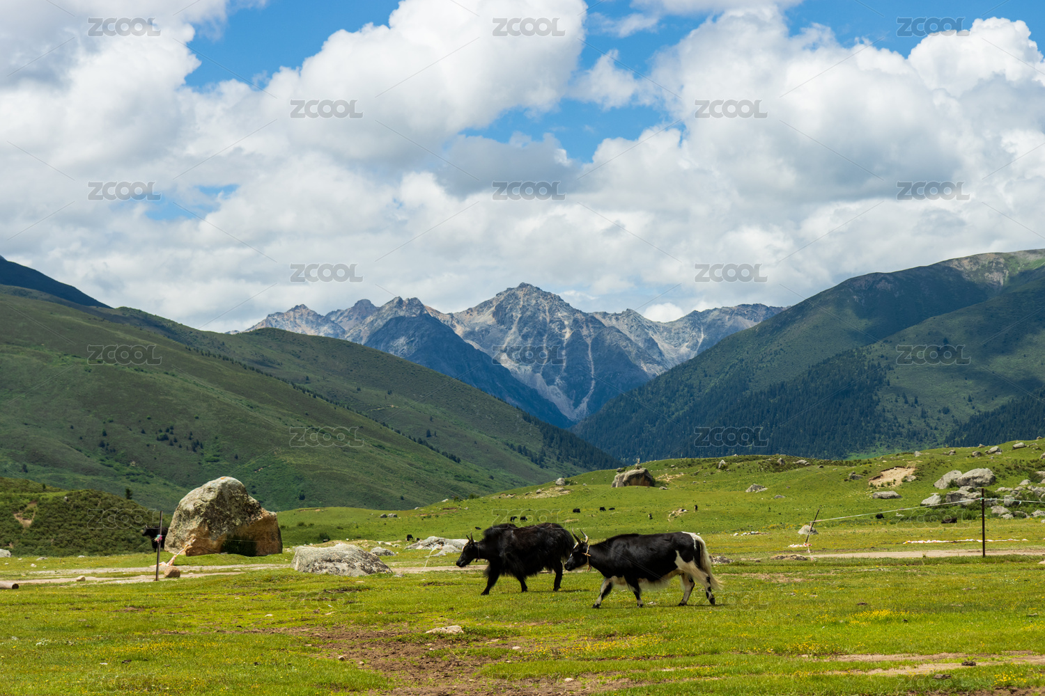雪山脚下的牧场