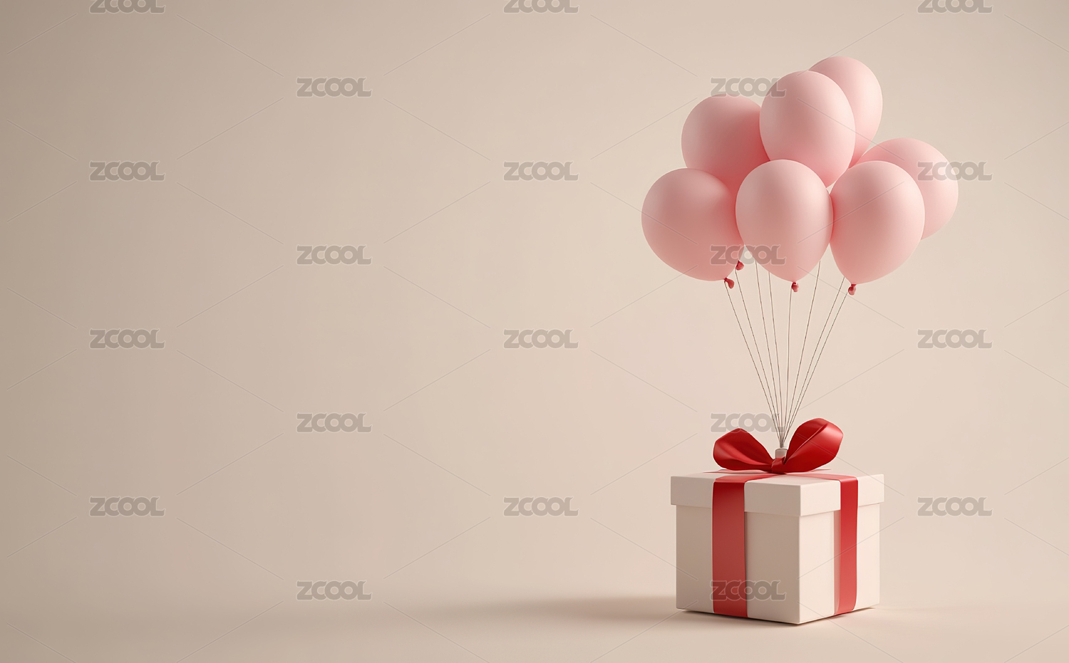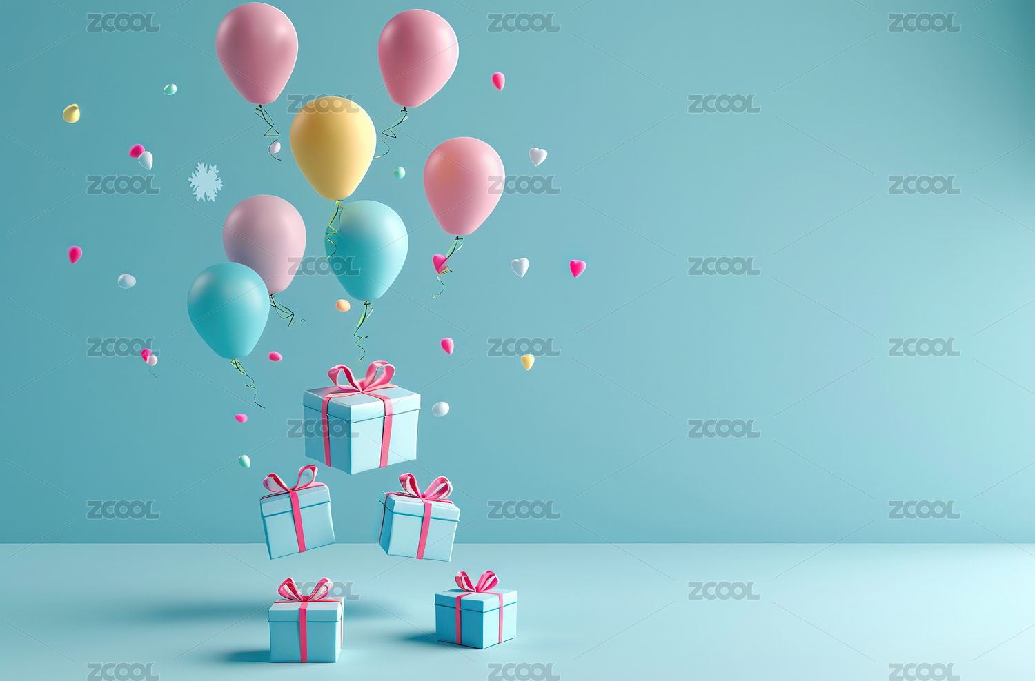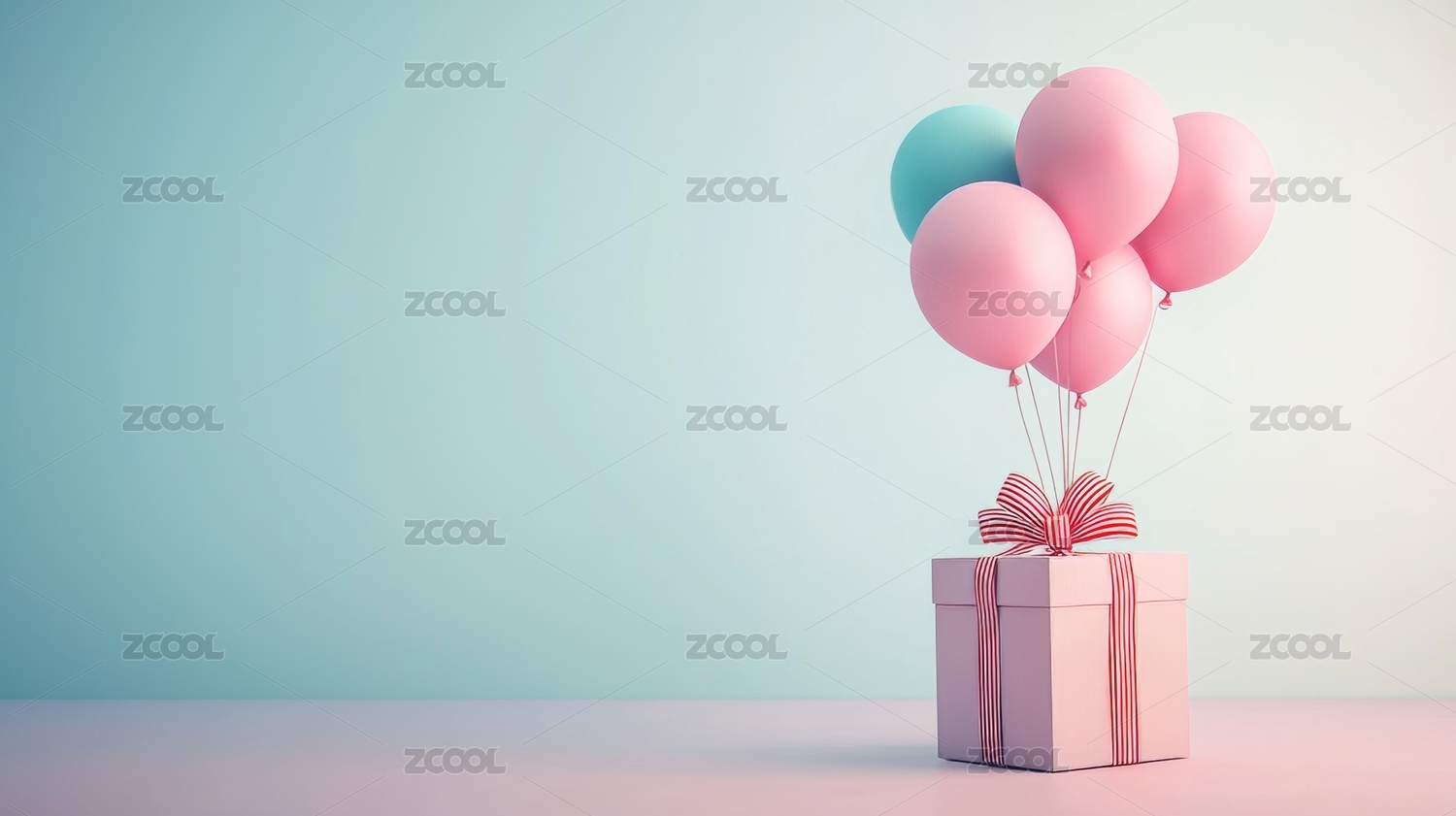 气球装饰的礼盒与背景