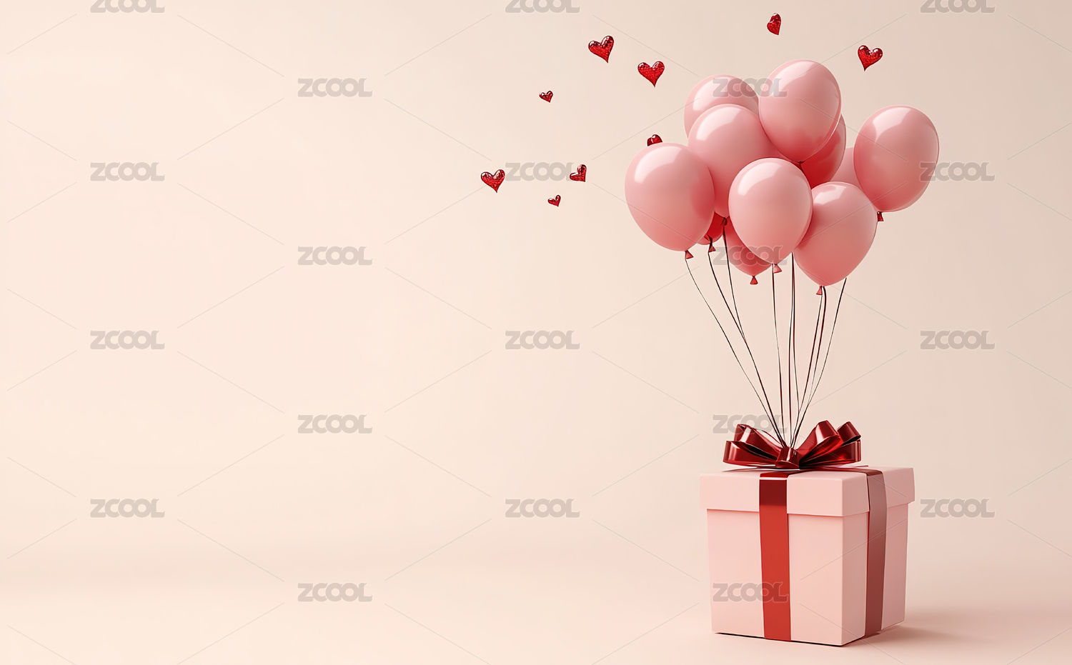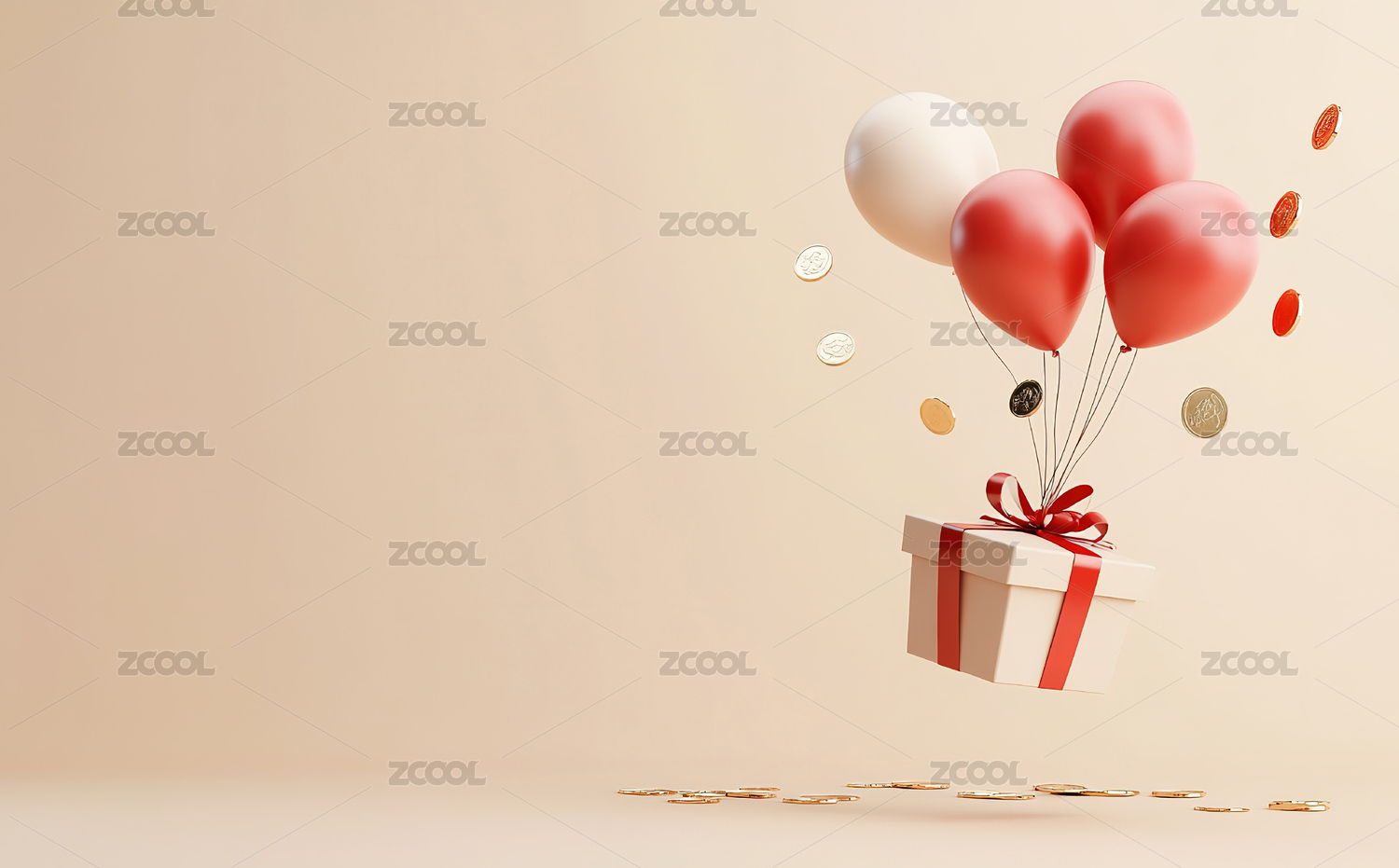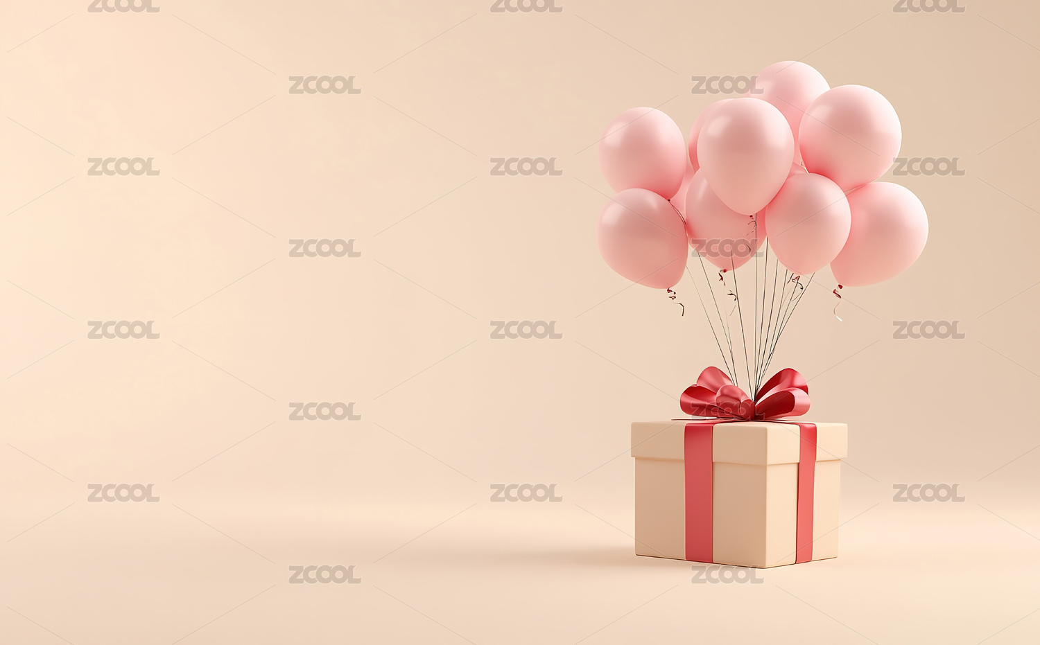 气球装饰的礼盒与背景