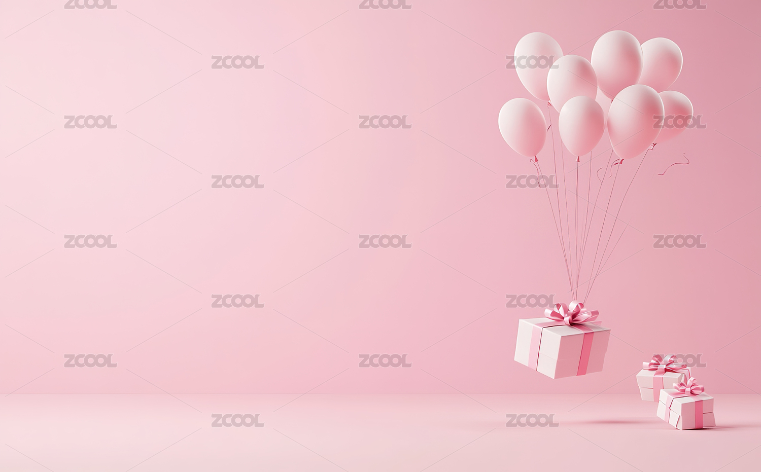 粉红色背景下的气球和礼品盒特写镜头
