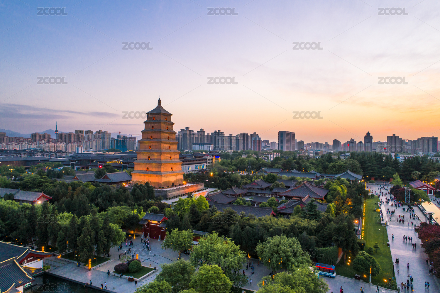 中国,陕西,西安,大雁塔,鸟瞰,航拍,夜景,景区,风景
