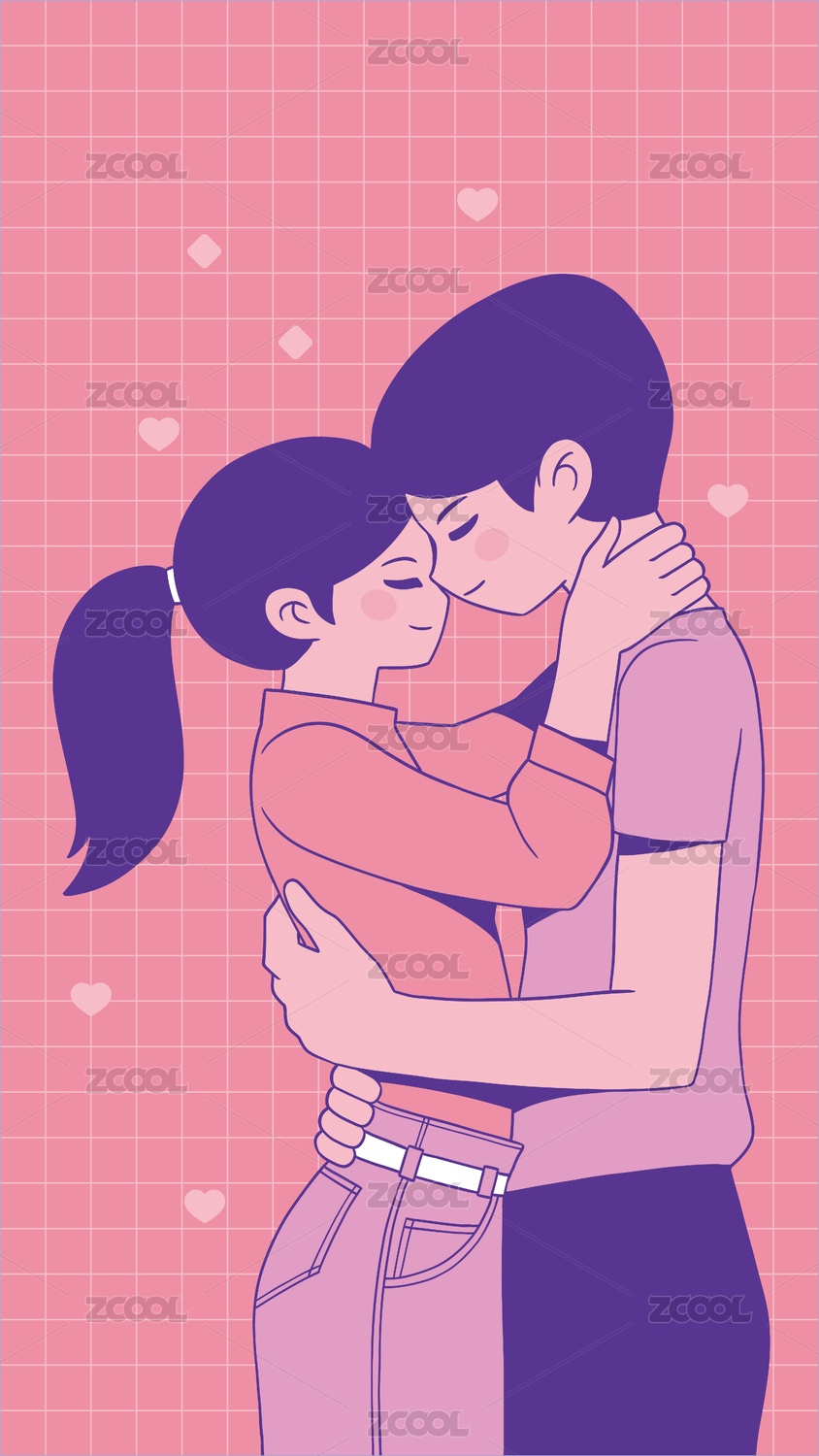 情人节情侣接吻亲吻温馨瞬间人物插画背景