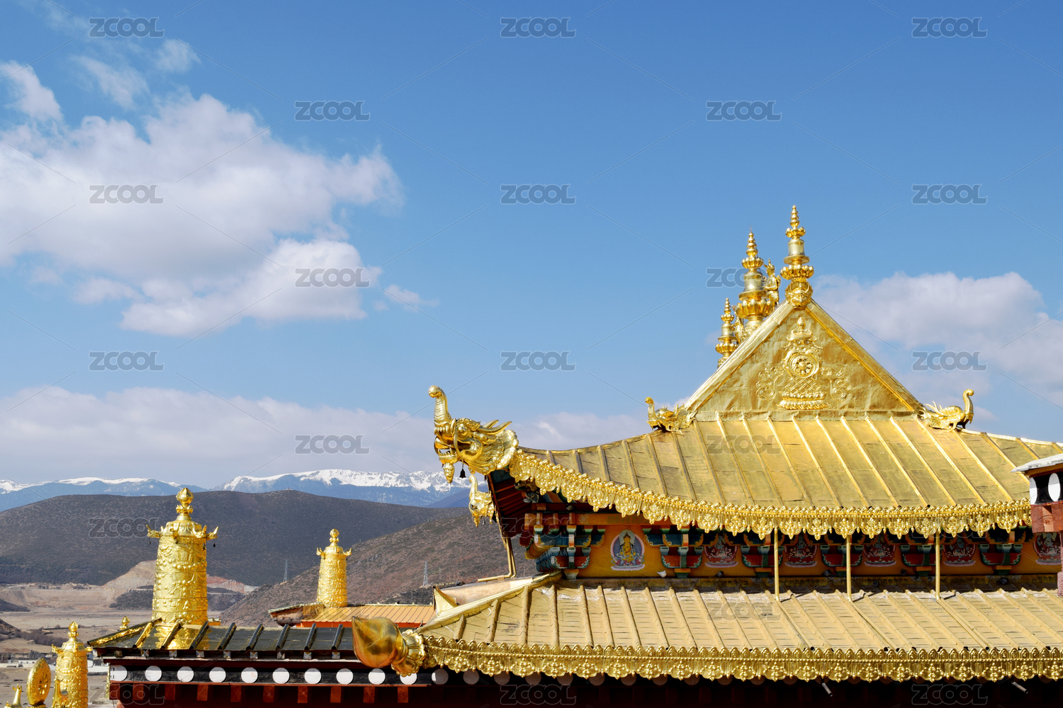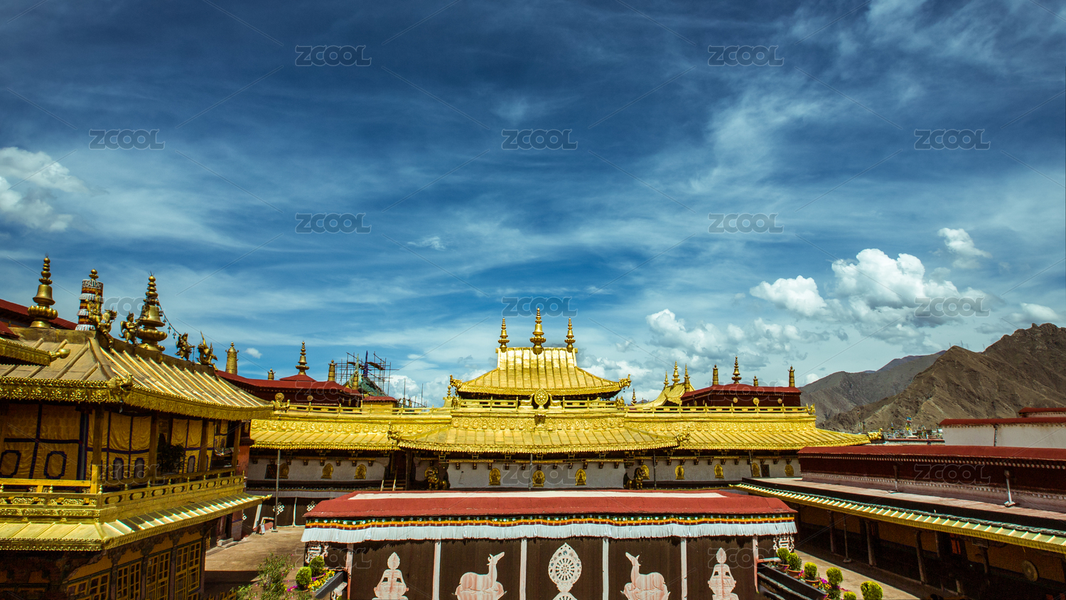 中国西藏自治区拉萨市大昭寺金碧辉煌的建筑群