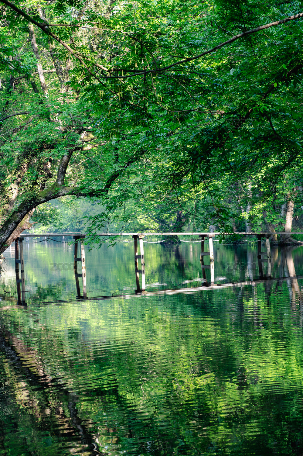 大自然绿色树林森林绿野仙踪小河溪流独木桥