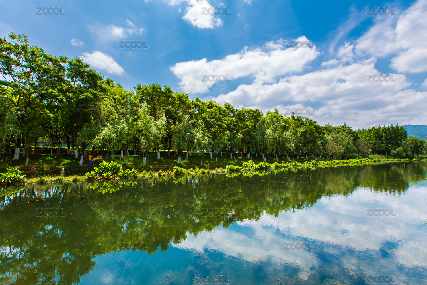 湿地公园水边茂盛树林风景图