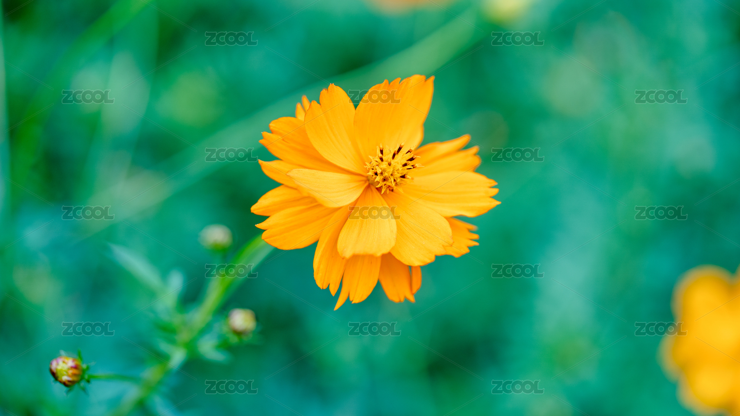 广东广州海珠湖公园绿色背景下的双色硫华菊