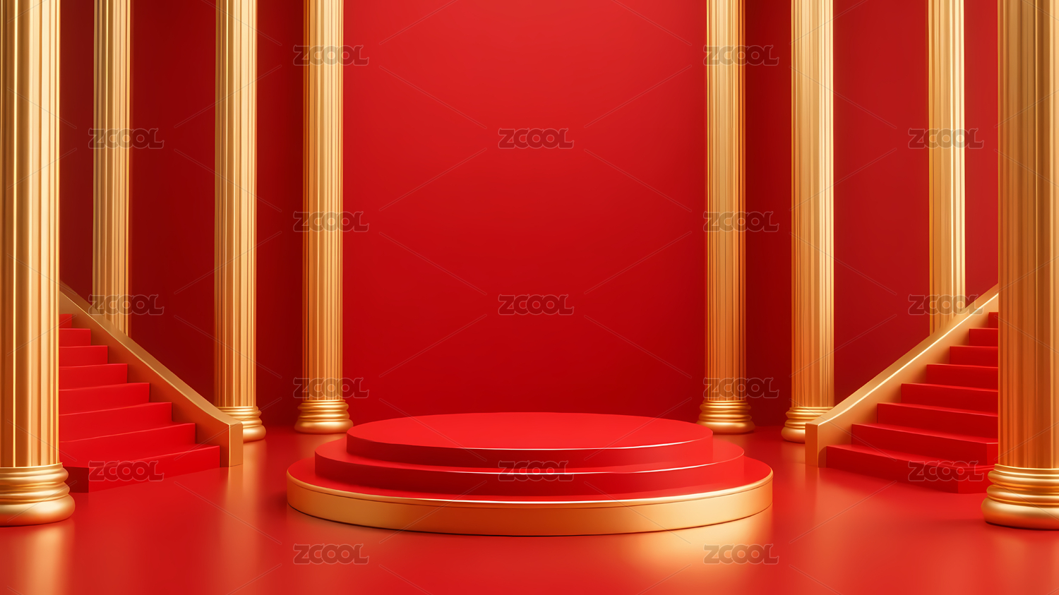 红色讲台金柱台阶背景