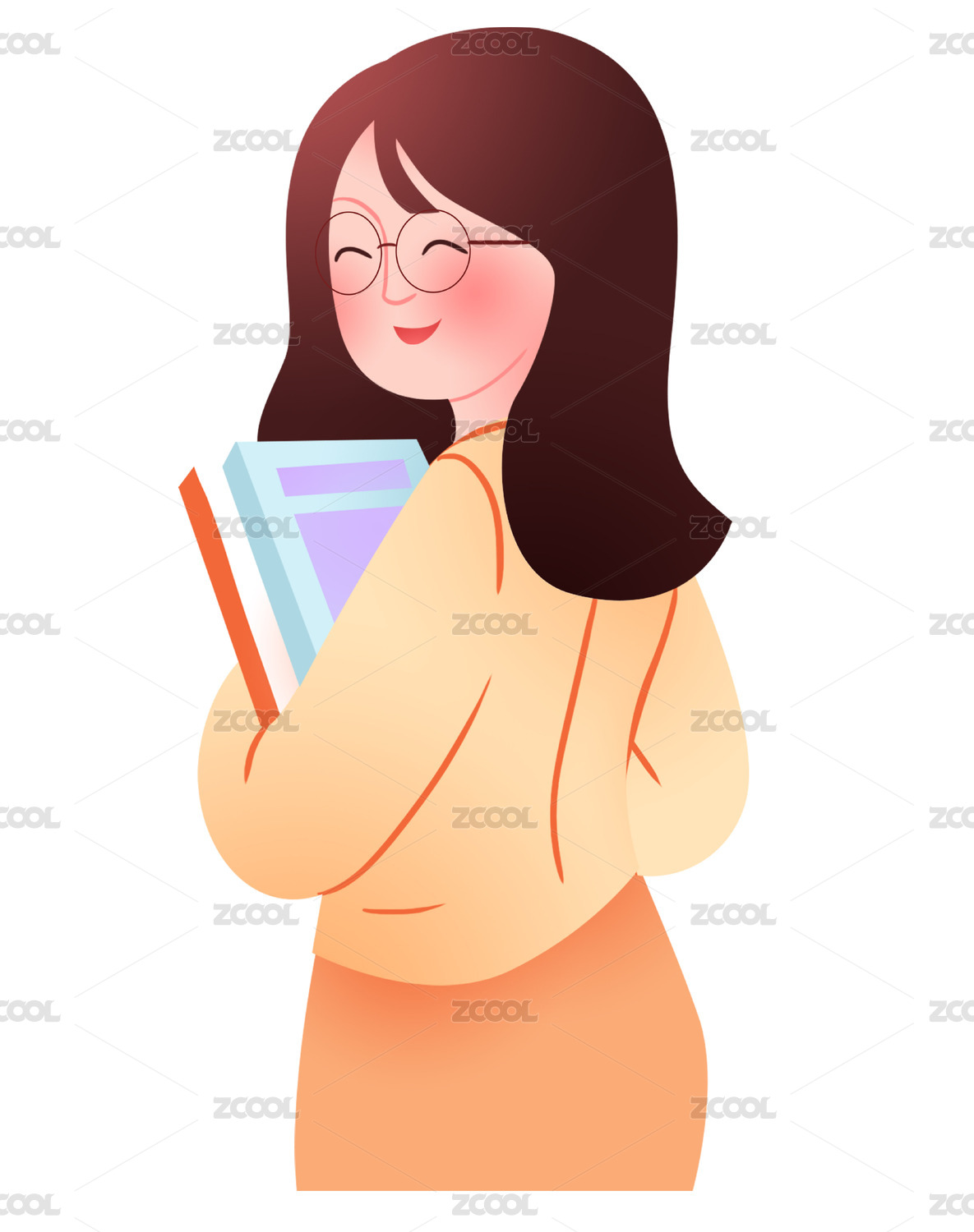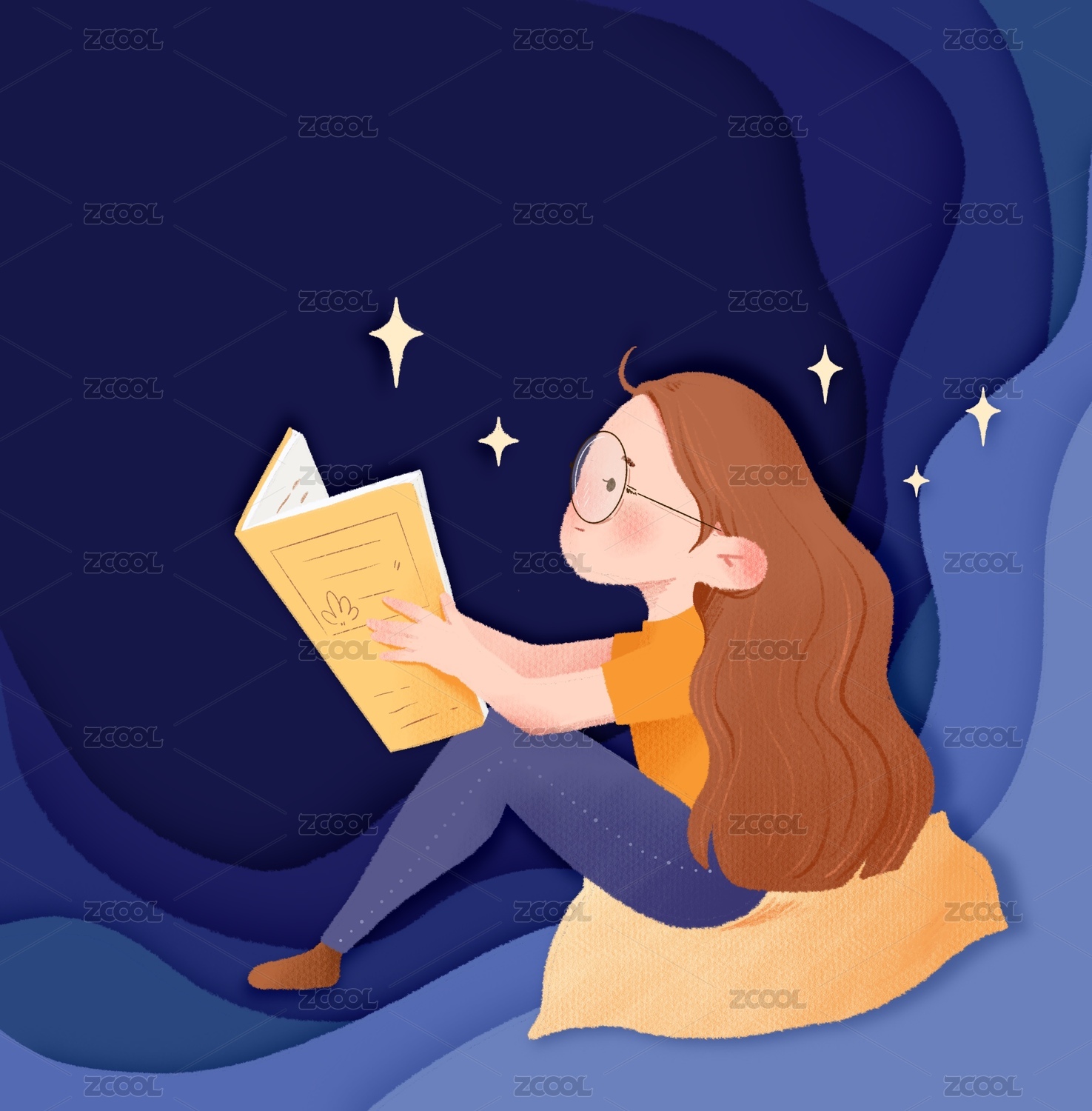 读书日,戴眼镜女孩,坐着,长发女孩,读书,看书,居家女孩,认真看书