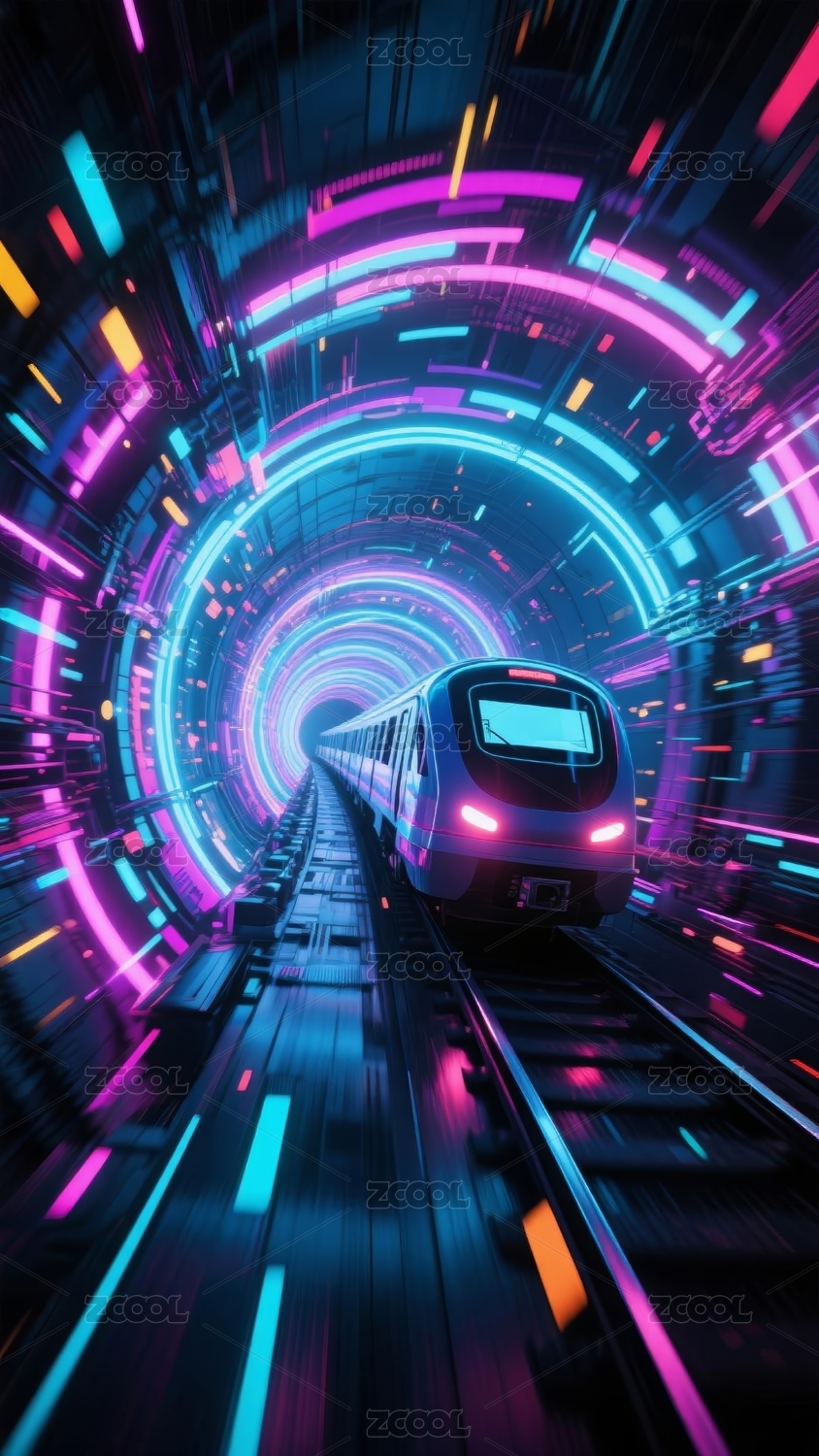 科幻磁悬浮火车高速通过磁力环赛博3D插画