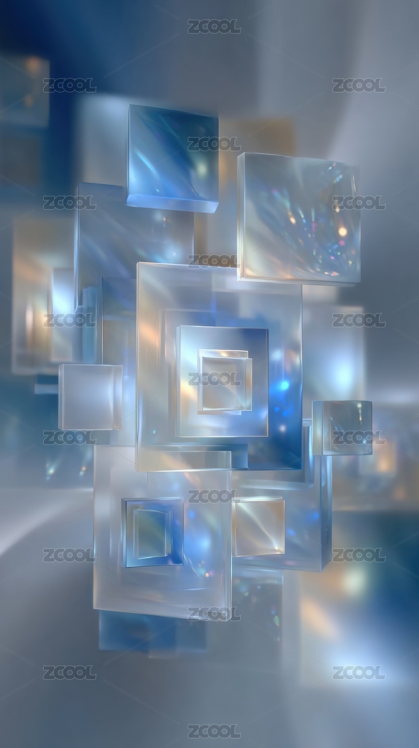 蓝色透明方块三维空间抽象艺术